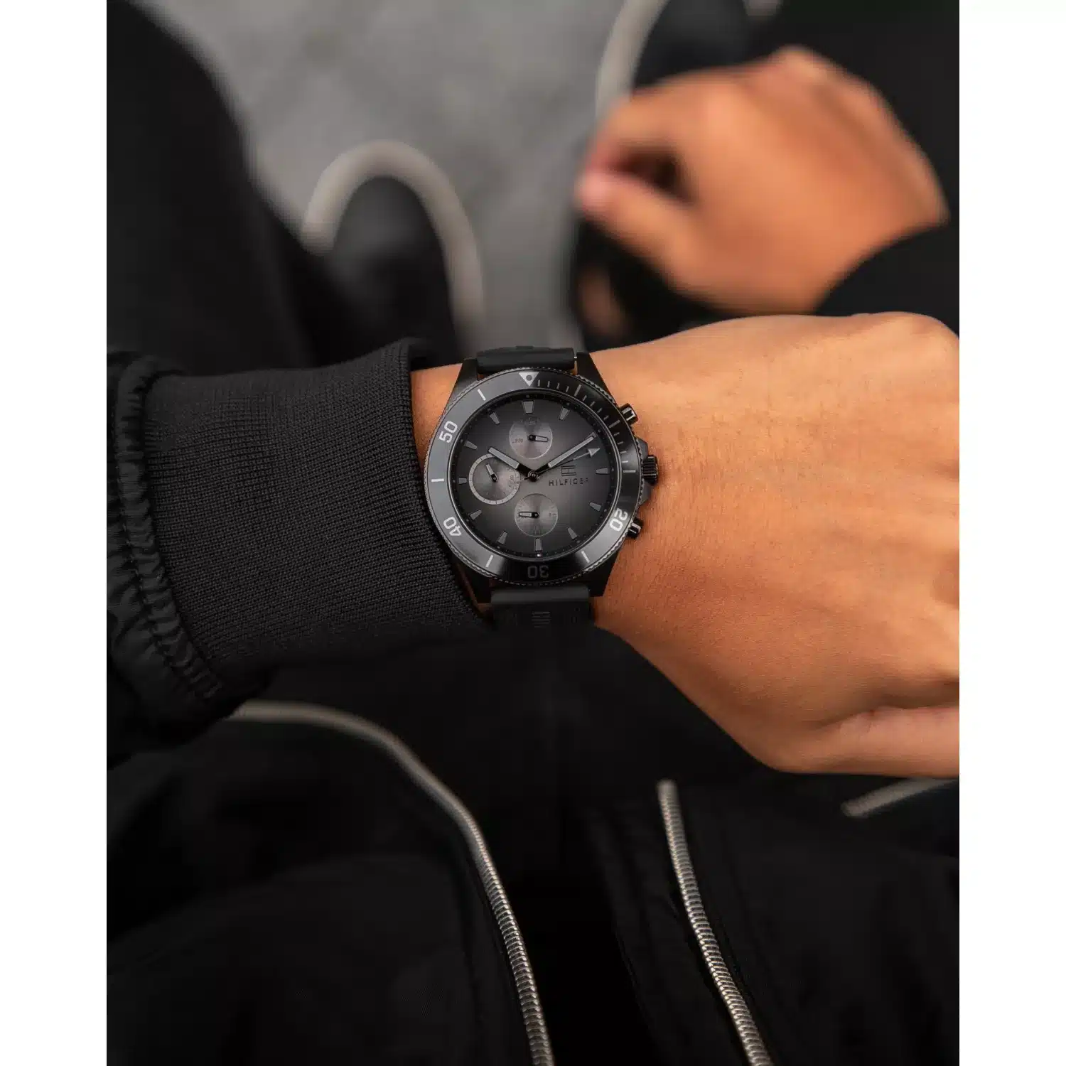 ساعة تومي هيلفيغر رجالي أصلية موديل (لاسون ) LARSON 1791921 بلون اسود و استيك مطاط بلون اسود