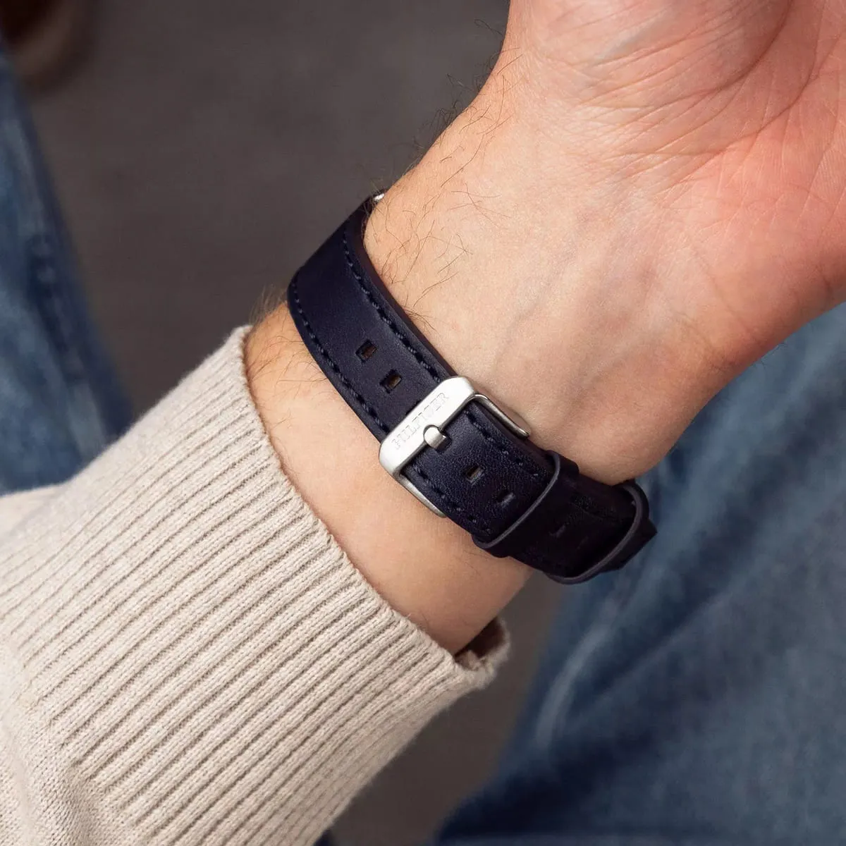 بلون ازرق و استيك جلد طبيعي بلون ازرق كحلي