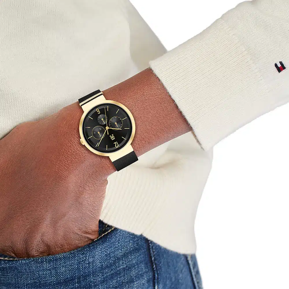 ساعة تومي هيلفيغر حريمي أصلية موديل (ليدا) Lidia 1782540 بلون اسود و استيك ستنلس ستيل بلون اسود