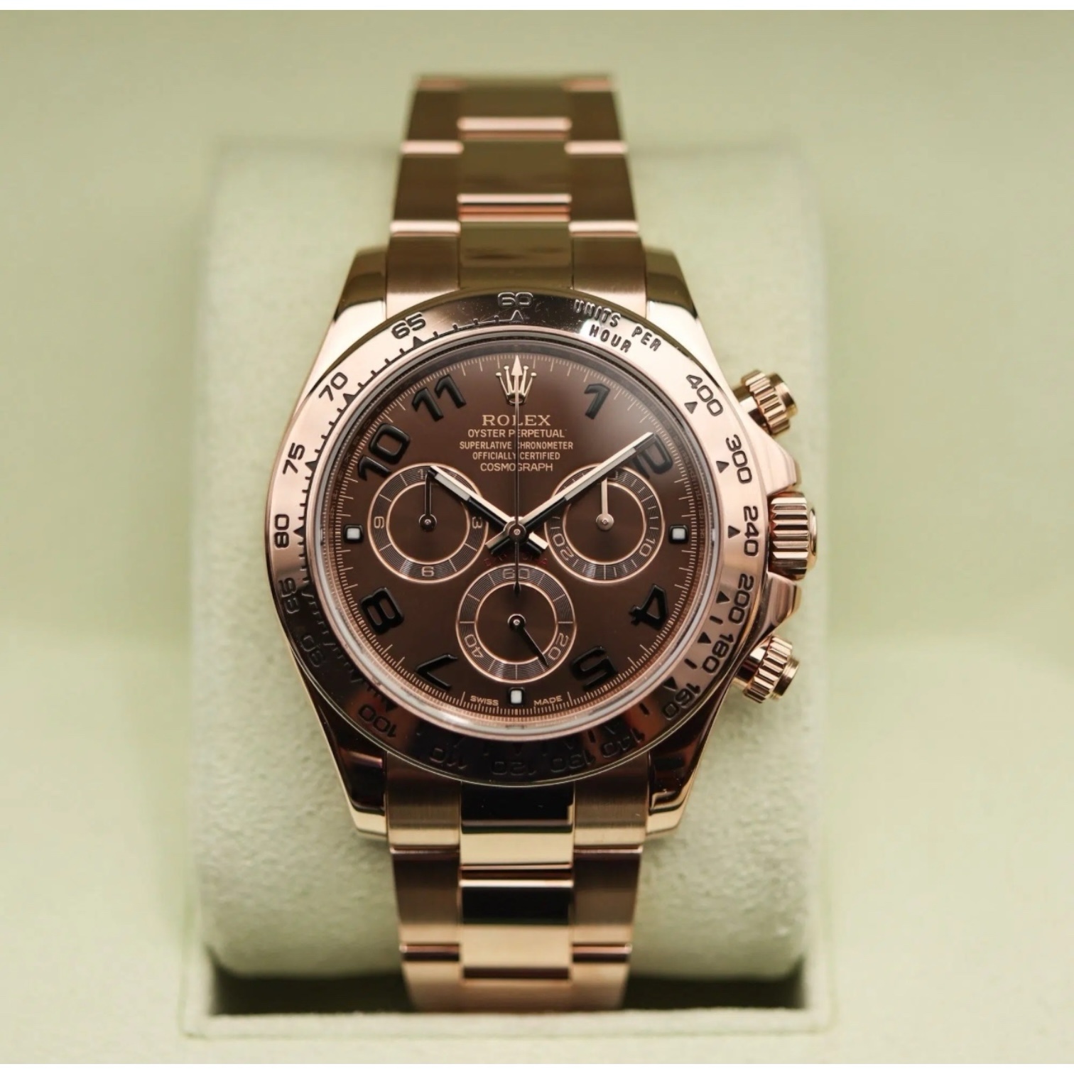 إذا كنت تبحث عن قطعة تجمع بين الفخامة والدقة الهندسية، فإن ساعة رولكس دايتونا ميرور اوريجينال تقدم لك ما يفوق التوقعات. بتصميم يجذب الأنظار في كل تفاصيله، تأتي هذه الساعة بلون ذهبي وردي أنيق، مع سوار معدني مصقول بعناية ليعكس بريقاً استثنائياً عند ارتدائها. يظهر على وجه الساعة لون بني داكن يضيف عمقاً وجاذبية مميزة، ما يمنحها حضوراً فاخراً يتناسب مع أرقى المناسبات أو الاستخدام اليومي بأسلوب راقٍ.