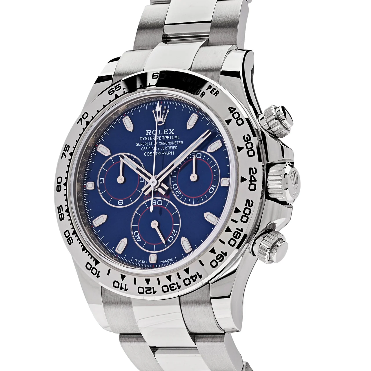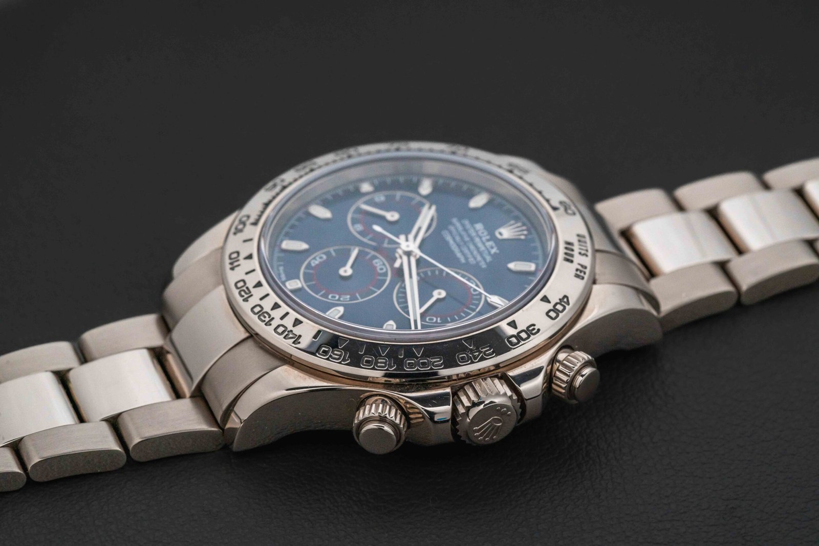 ساعة رولكس دايتونا، كما تُعرف هذه التحفة، تتميز بحركة كرونوغراف متقدمة تجعلها رفيقًا مثاليًا للرجال الذين يقدرون الدقة في كل لحظة. في الصورة، يظهر التصميم بشكل متناسق، حيث يتناغم اللون الأزرق الداكن مع اللمعان الفضي، مما يعطي انطباعًا بالقوة والأناقة. هذه الساعة ليست مجرد أداة لقياس الوقت، بل هي تعبير عن الذوق الرفيع الراقي ، مع تفاصيل دقيقة مثل العلامة التجارية “rolex” المحفورة بوضوح أعلى المينا، وزر التشغيل الجانبي الذي يعزز من الوظائف الرياضية.