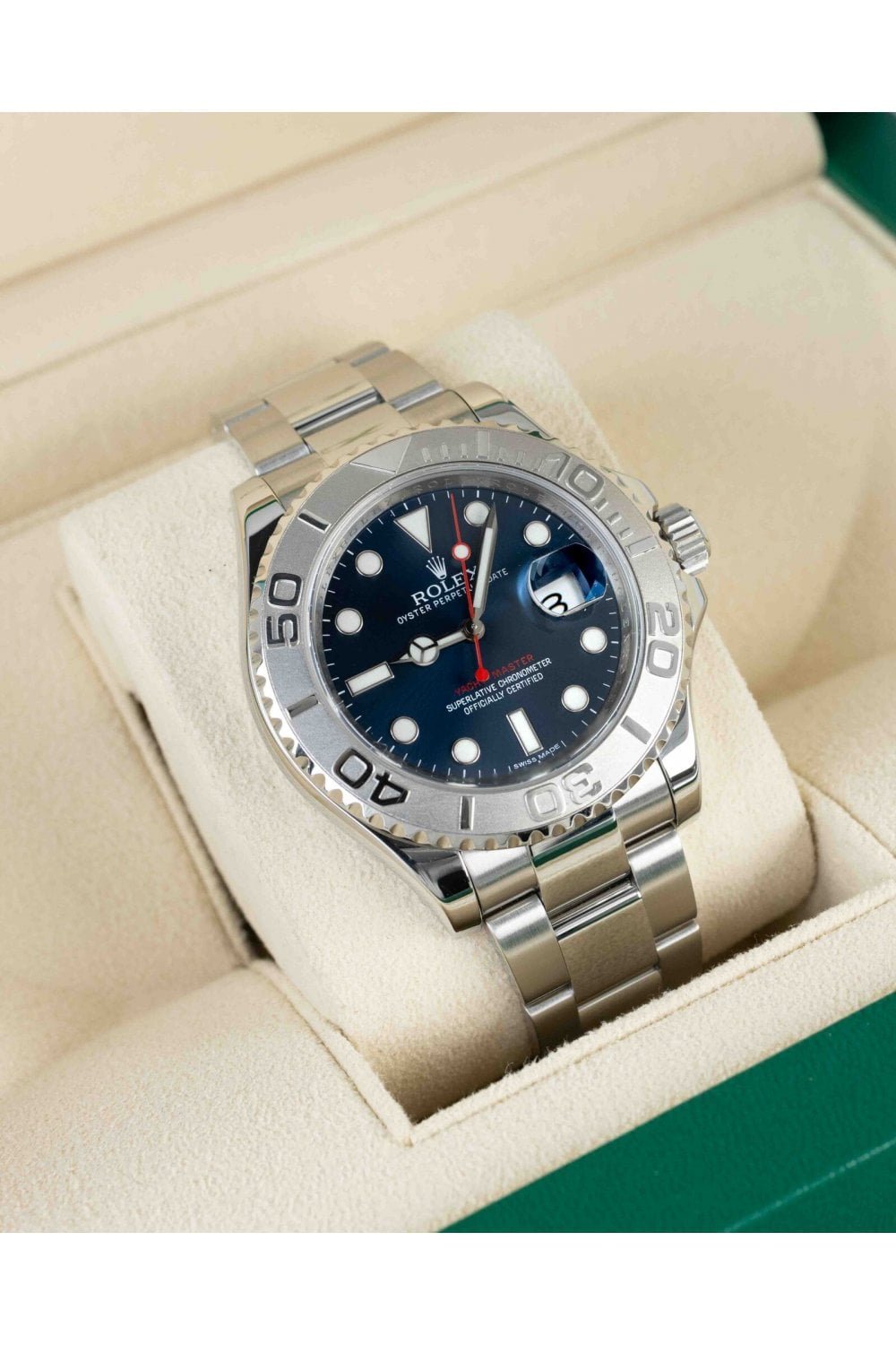 الإبزيم والسوار المعدني المصقول يمنحان ساعة رولكس ياخت ماستر ميرور أوريجنال لمسة من التألق والانسيابية مع راحة استثنائية عند ارتدائها على المعصم. التصميم المتين والمصنوع بعناية يضمن لك أن تظل الساعة لامعة كالجديدة حتى مع مرور الوقت والاستخدام اليومي. بجانب ذلك، الميناء مزود بتاريخ واضح في موقع الساعة الثالثة مع تكبير العدسة، ما يوفر تجربة عملية وشعورًا احترافيًا لكل من يرتديها، ويعكس جودة الساعات السويسرية الفاخرة.