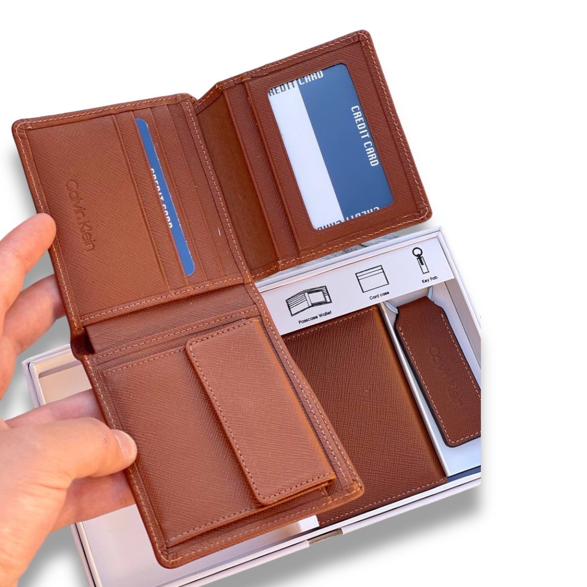 طقم من كالفن كلاين مكون من محفظه ومادليه وكراته رجالي
