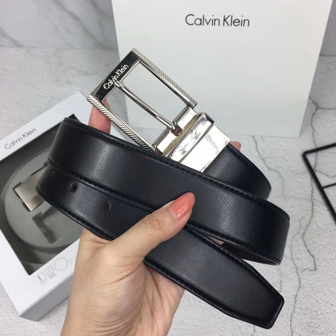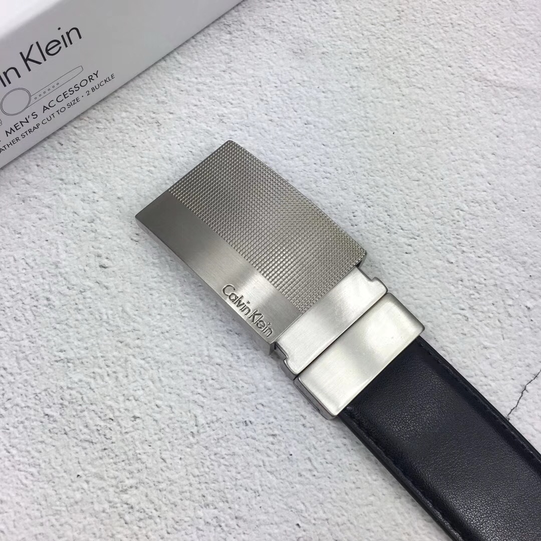 حزام كالفن كلاين جلد طبيعي للرجال بلون اسود وبني دبل فيس