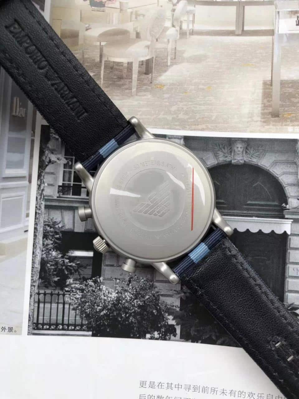 ساعة امبوريو ارماني للرجال اصلية موديل ( لوجي ) Luigi AR1949 بلون اسود واستيك لون ازرق