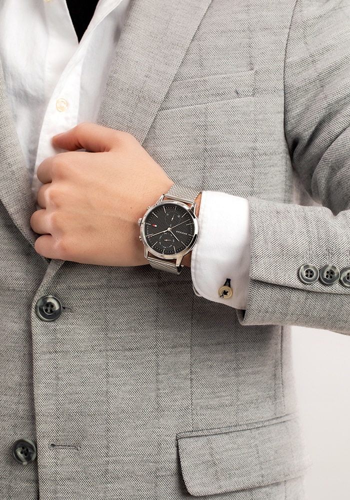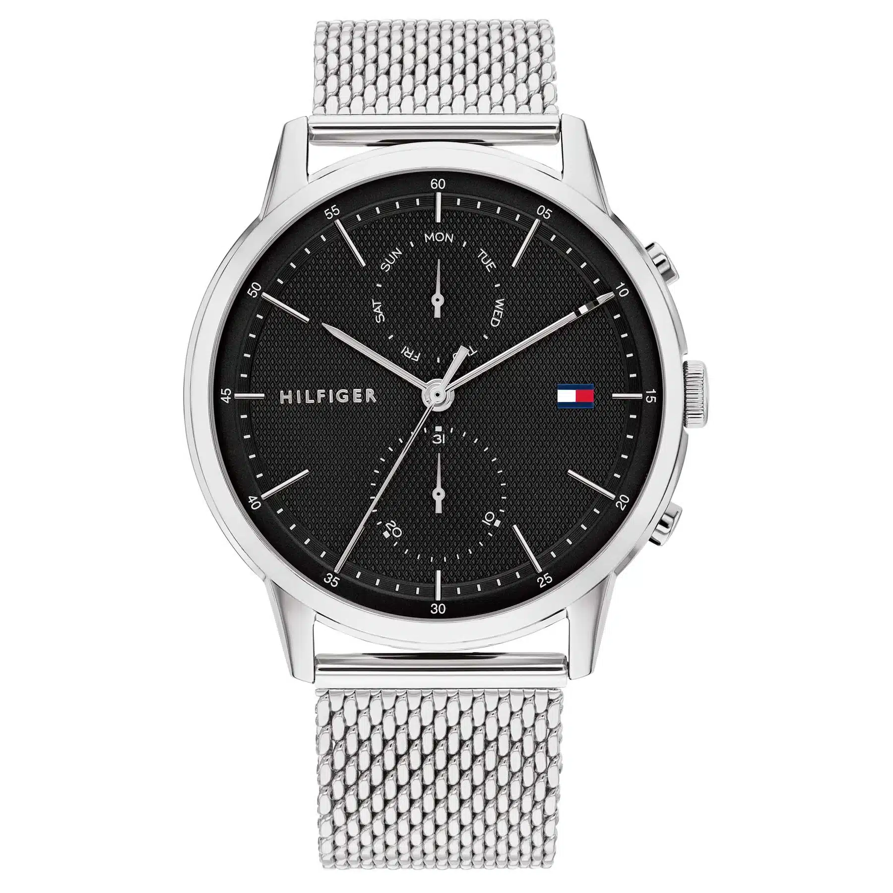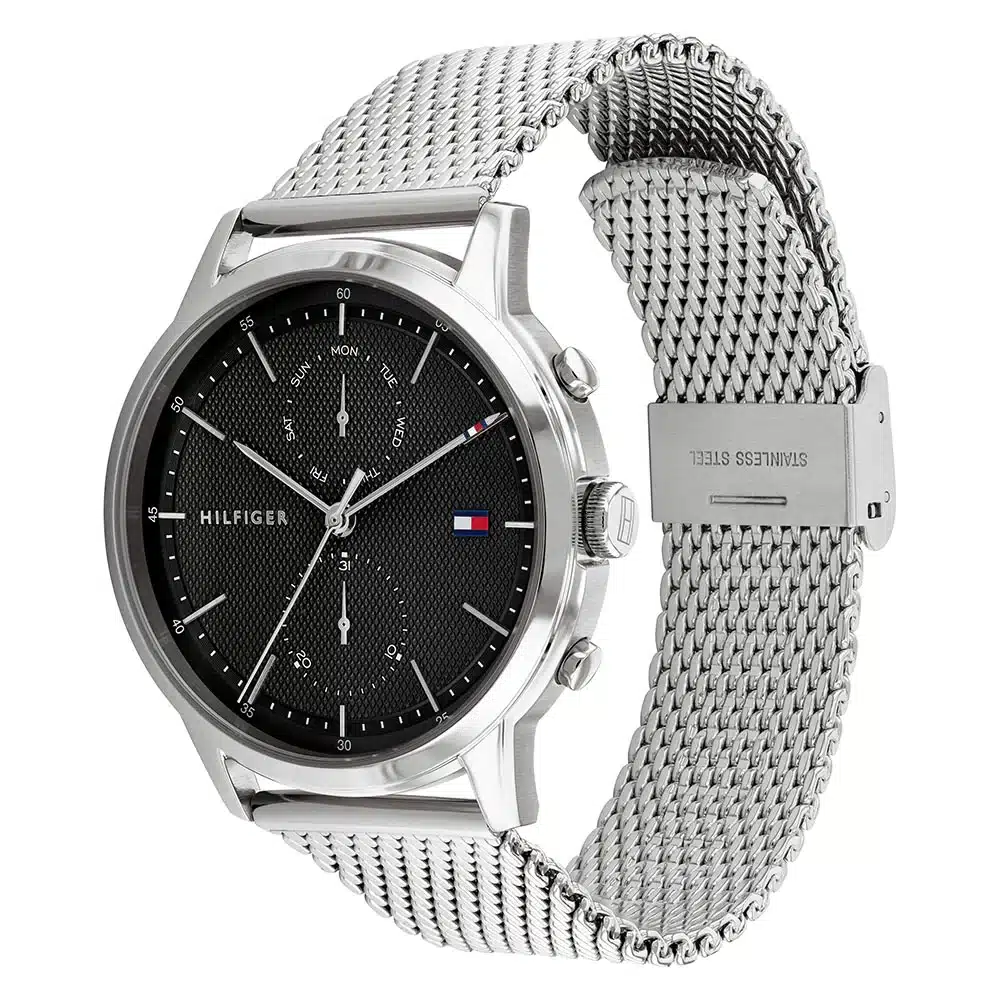 ساعة تومي هيلفيغر رجالي 1710433 بلون اسود اوستيك معدن فضي  ستانلس ستيل
