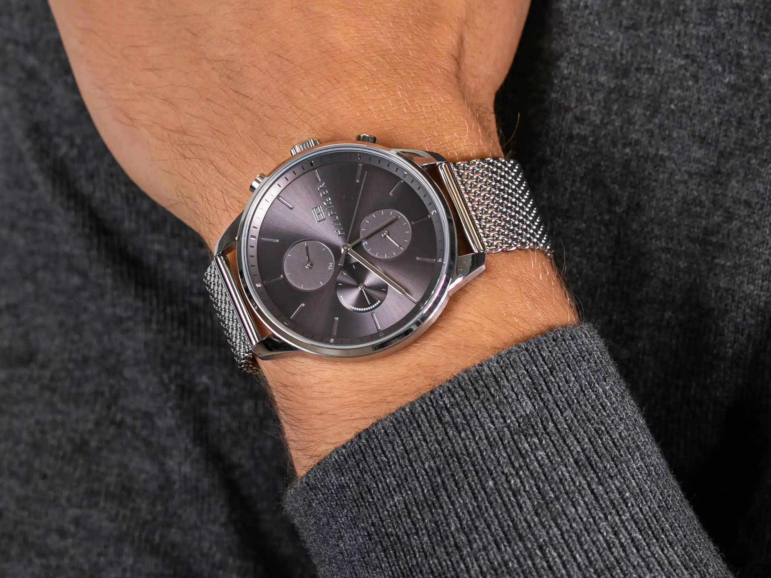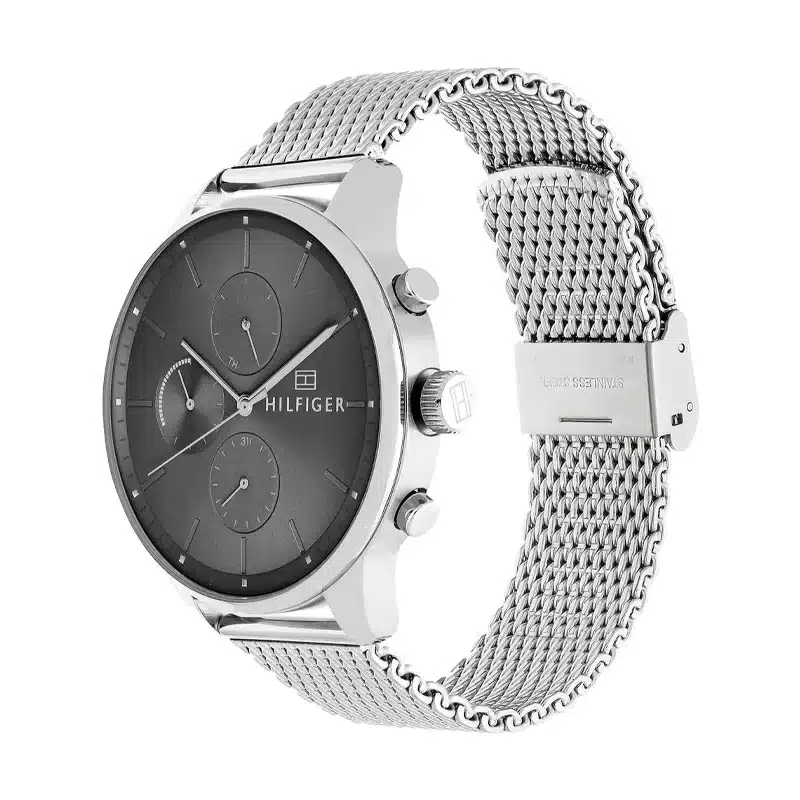 ساعة تومي هيلفيغر للرجال اصليه موديل 1791484 رمادي واوستيك معدن بلون فضي