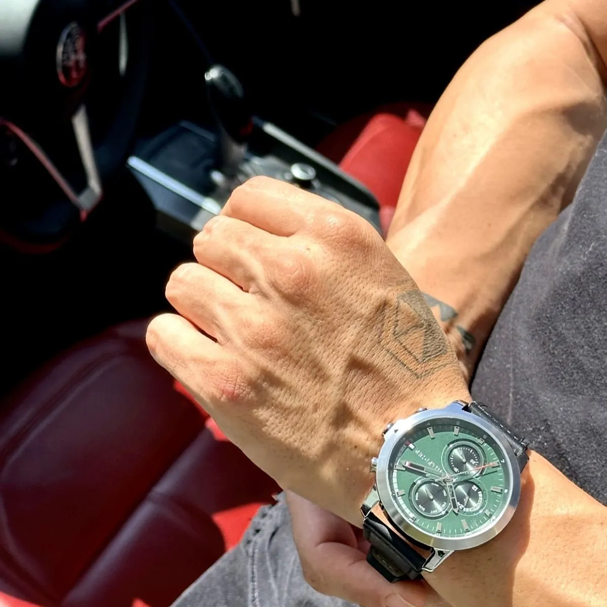 بلون اخضر و استيك جلد طبيعي بلون اسود