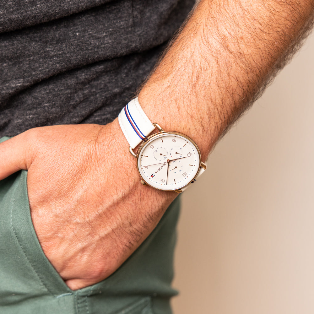 تستحضر ساعة تومي هيلفيغر للنساء حضورًا خاصًا يليق بذوق الرفاهية؛ فهي ليست مجرد أداة لقياس الوقت، بل بيان أناقة يعكس شخصية واثقة ومحبة للتفاصيل. الوزن المتوازن يمنح راحة على المعصم طوال اليوم، والواجهة النظيفة تجعل كل لمحة إلى الوقت لحظة متعة بصرية. تبرز اللمسات الدقيقة على العقارب والحواف المصقولة مستوى عالٍ من العناية والحِرَفية التي تتوقعينها من علامة تعكس معنى الفخامة المعاصرة.