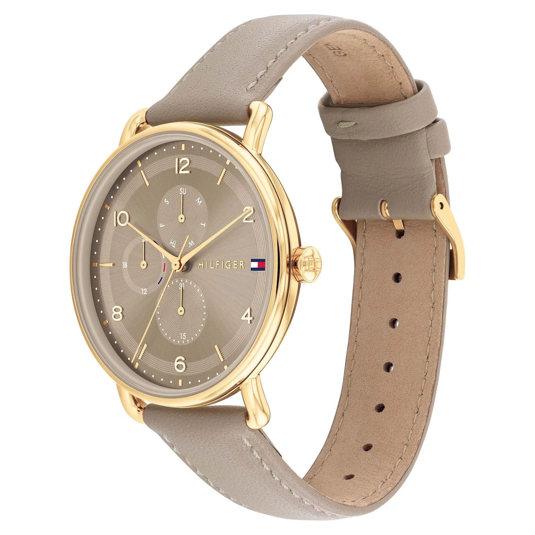 ساعة تومي هيلفيغر Tommy Hilfiger للنساء أصلية موديل Lily 1782661 لون بيج و استيك جلد طبيعي لون بيج.