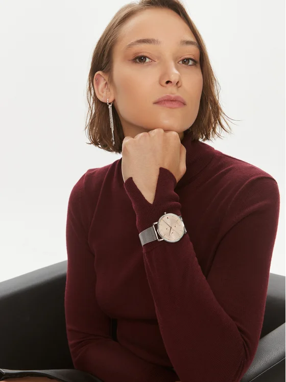 ساعة تومي هيلفيغر Tommy Hilfiger للنساء أصلية موديل Lily 1782662 لون وردي و استيك معدن ستانلس لون فضي.