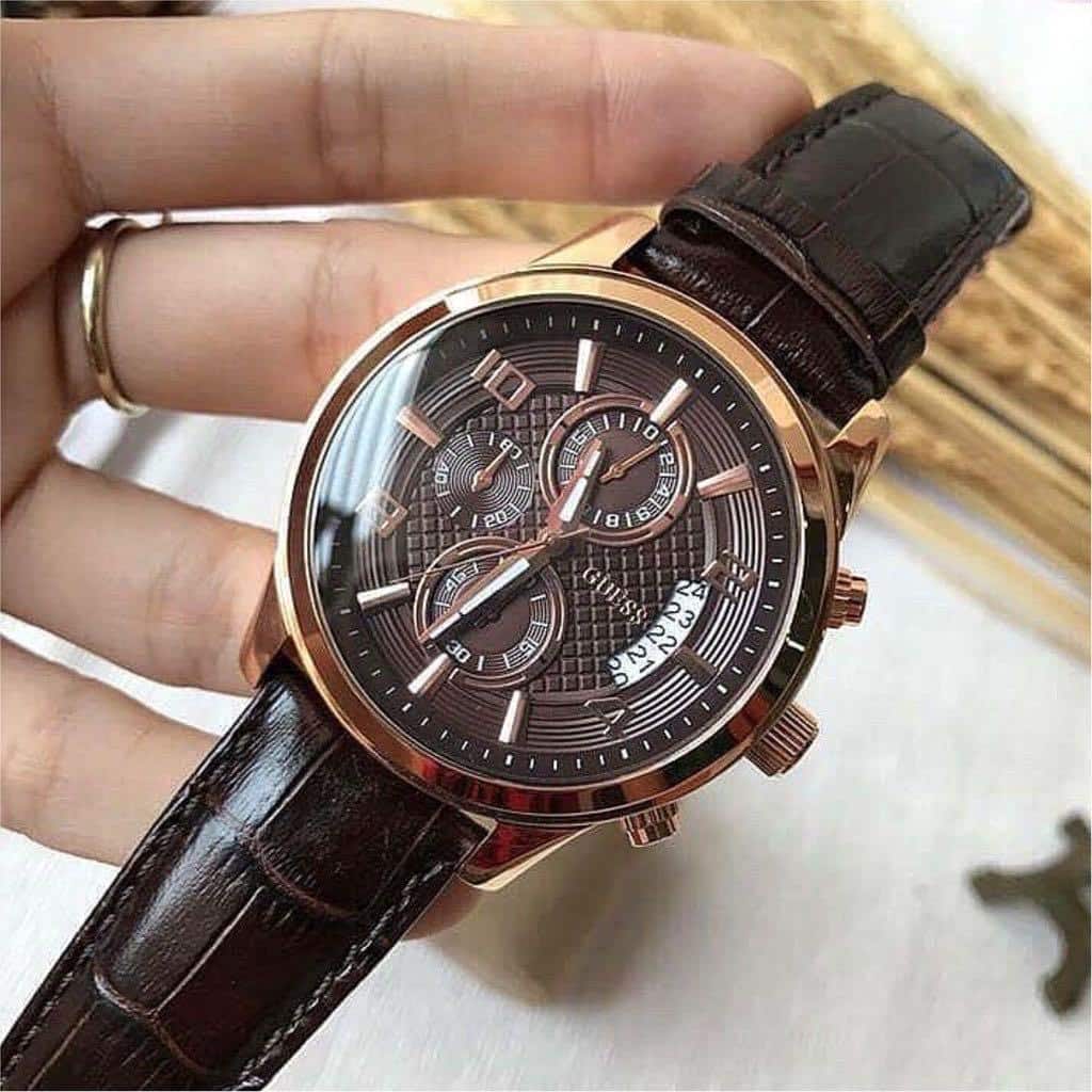 ساعة جيس للرجال اصلية موديل Exec W0076G4 بلون بني واستيك جلد بلون اسود