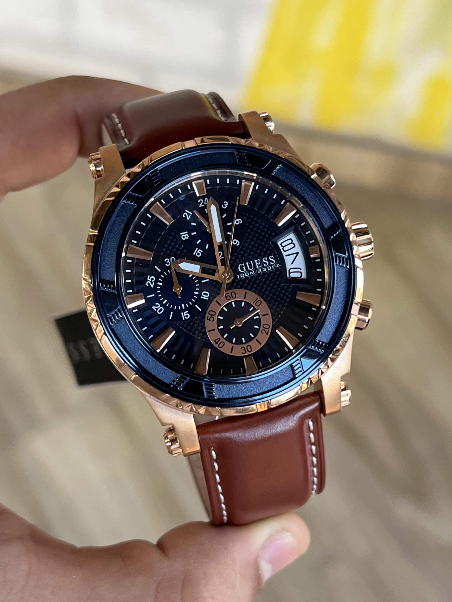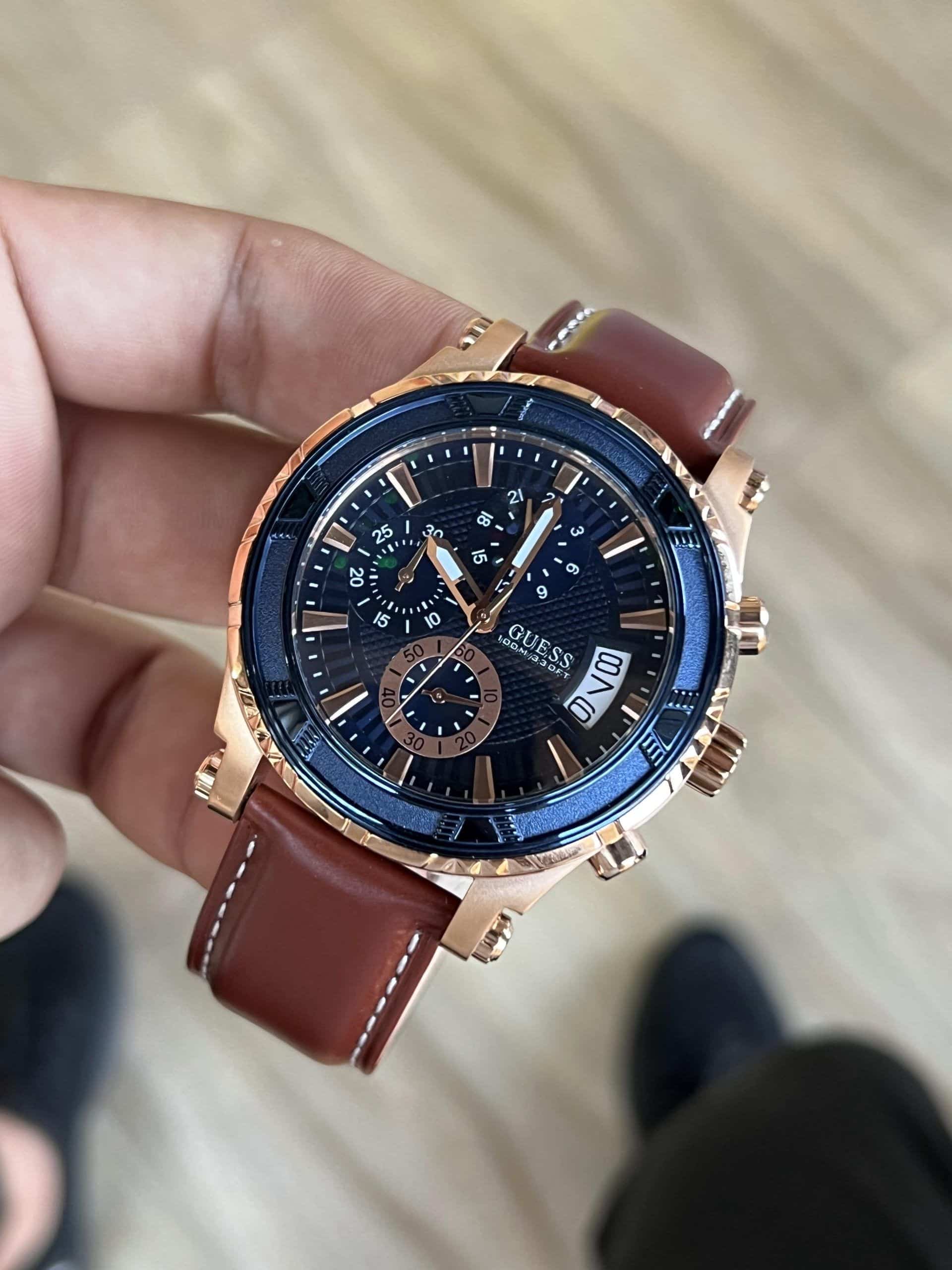 ساعة جيس للرجال اصلية موديل (بيناكل) Pinnacle W0673G3 بلون ازرق واستيك جلد بلون بني