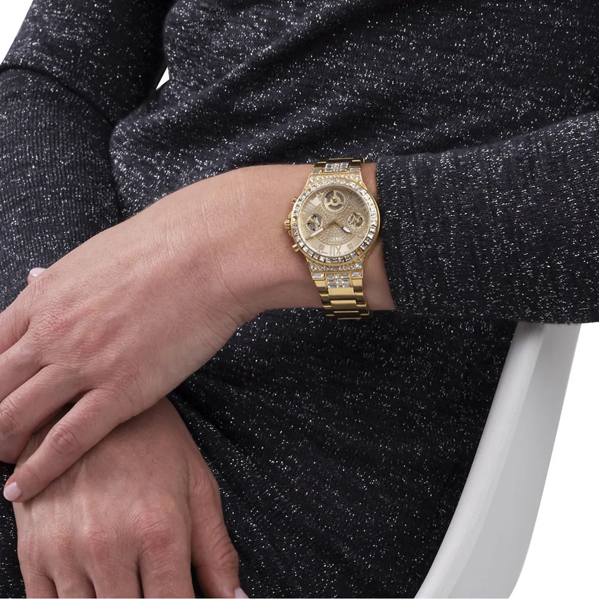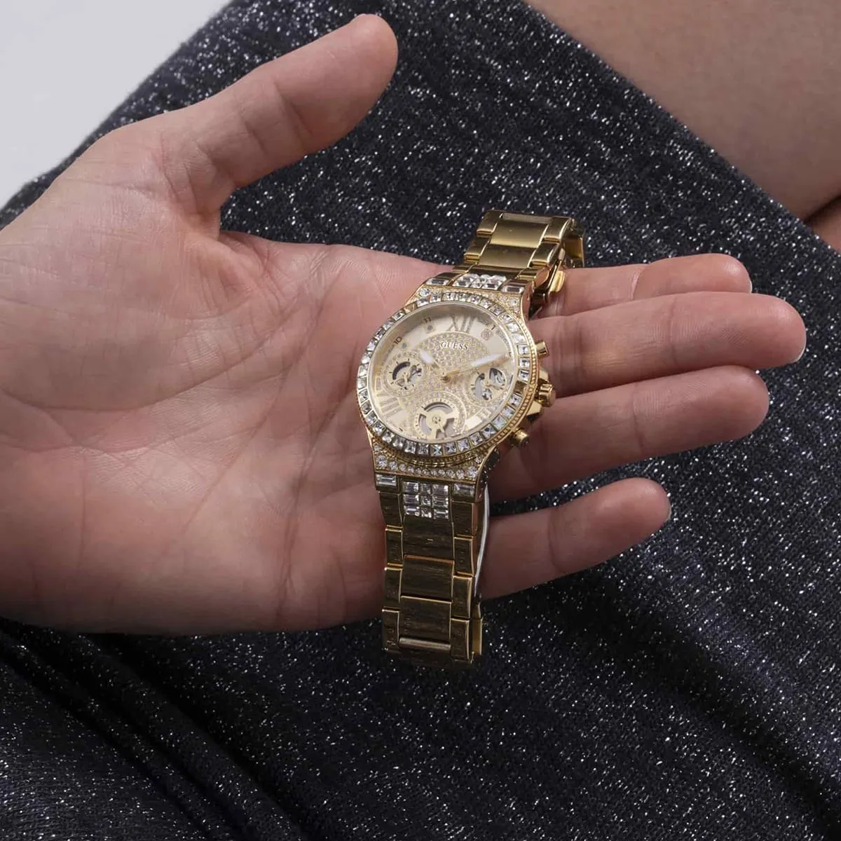 الساعة مزينة بفصوص كريستال