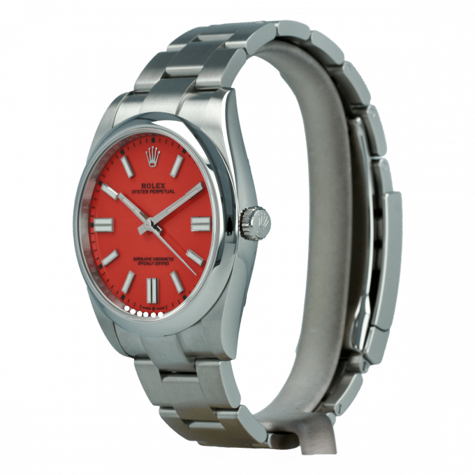 ساعة رولكس أويستر بيربتوال ميرور اورجينال هي رمز للأناقة والرقي، تجمع بين جاذبية التصميم العصري وفخامة التفاصيل الكلاسيكية. تأتي هذه الساعة بمينا برتقالي نابض بالحياة، يضفي عليها طابعاً فريداً يلفت الأنظار في كل مناسبة. انعكاس الضوء على زجاج الساعة المقاوم للخدش يبرز جمال العقارب والمؤشرات الفضية ذات التصميم الهندسي، فتمنح مرتديها حضوراً مميزاً وشخصية تواكب أحدث اتجاهات الموضة. يُحيط بالمينا إطار معدني مصقول بعناية متناهية، ليعزز الإحساس بالفخامة ويضفي لمسة نهائية براقة.