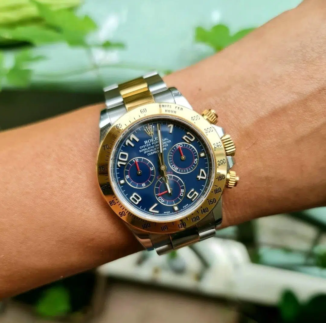 تألّق بإطلالة عصرية لا مثيل لها مع ساعة رولكس دايتونا ميرور أوريجنال، الخيار الأمثل لمن يبحث عن الفخامة والتميّز في تفاصيل الأكسسوارات الشخصية. تجمع هذه الساعة بين الأناقة الكلاسيكية واللمسة العصرية، إذ تأتي بتصميم مزدوج من الفولاذ اللامع واللون الذهبي الفريد ليمنح المعصم لمعة آسرة تخطف الأنظار من النظرة الأولى. يعكس الإطار الذهبي المتألق مع السوار المتداخل بين الفولاذ والذهب رقيًا استثنائيًا، ويجعل ساعة رولكس دايتونا ميرور أوريجنال قطعة مركزية في أي مجموعة ساعات فاخرة.