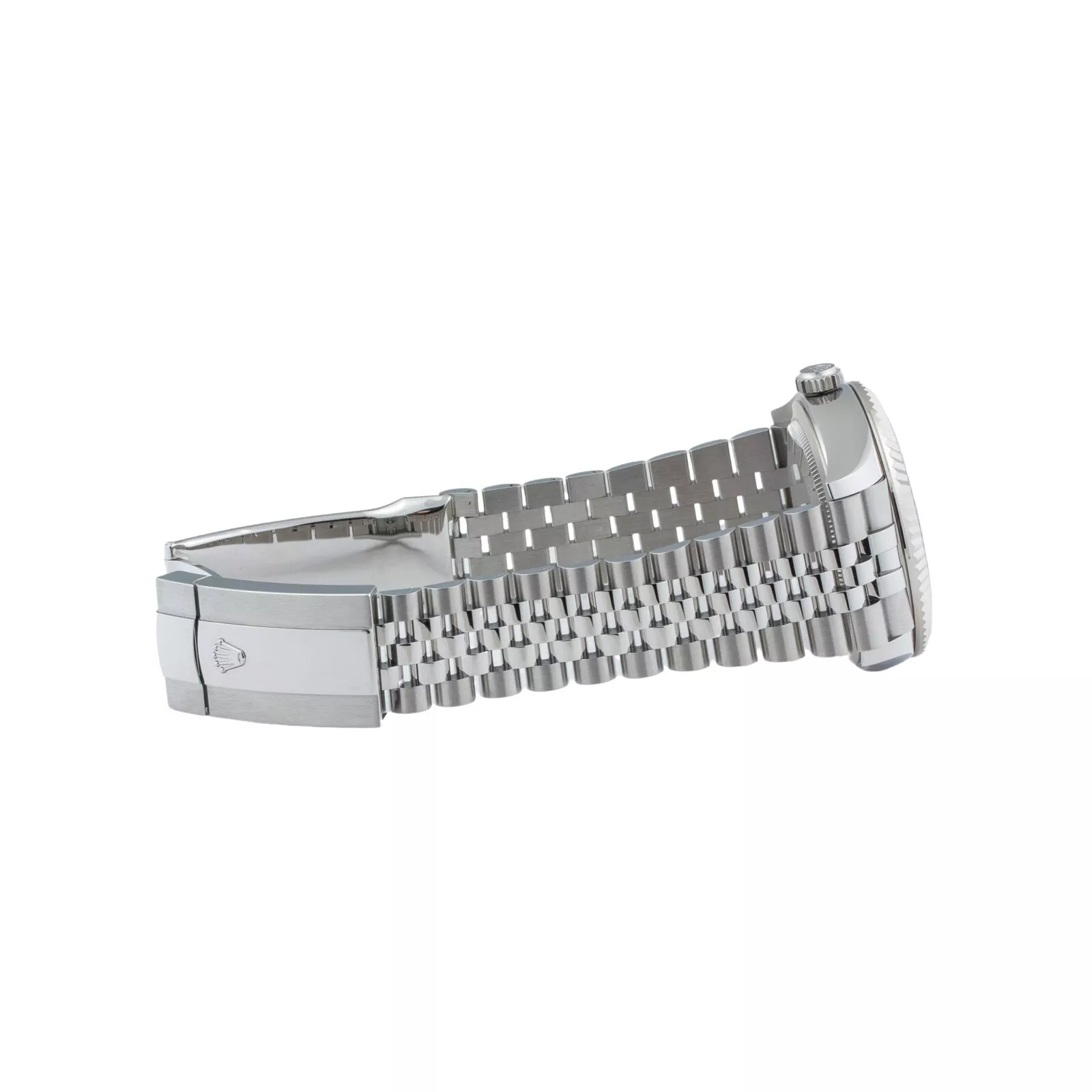 يبدأ الجمال من إطارها اللامع والمسنن الذي يضفي طابعًا مميزًا وفخامة لا تضاهى على معصمك؛ أما قرص الساعة الأبيض الناصع فيبرز بوضوح الأرقام والمؤشرات الفضية اللامعة، ليمنحك رؤية واضحة للوقت في كافة الظروف. وتكتمل روعة لوحة العرض مع نافذة عرض التاريخ الواضحة عند الرقم ثلاثة، في لمسة عملية تجمع التصميم الأنيق مع الحاجة العملية لمتابعة الوقت والتاريخ بدقة.