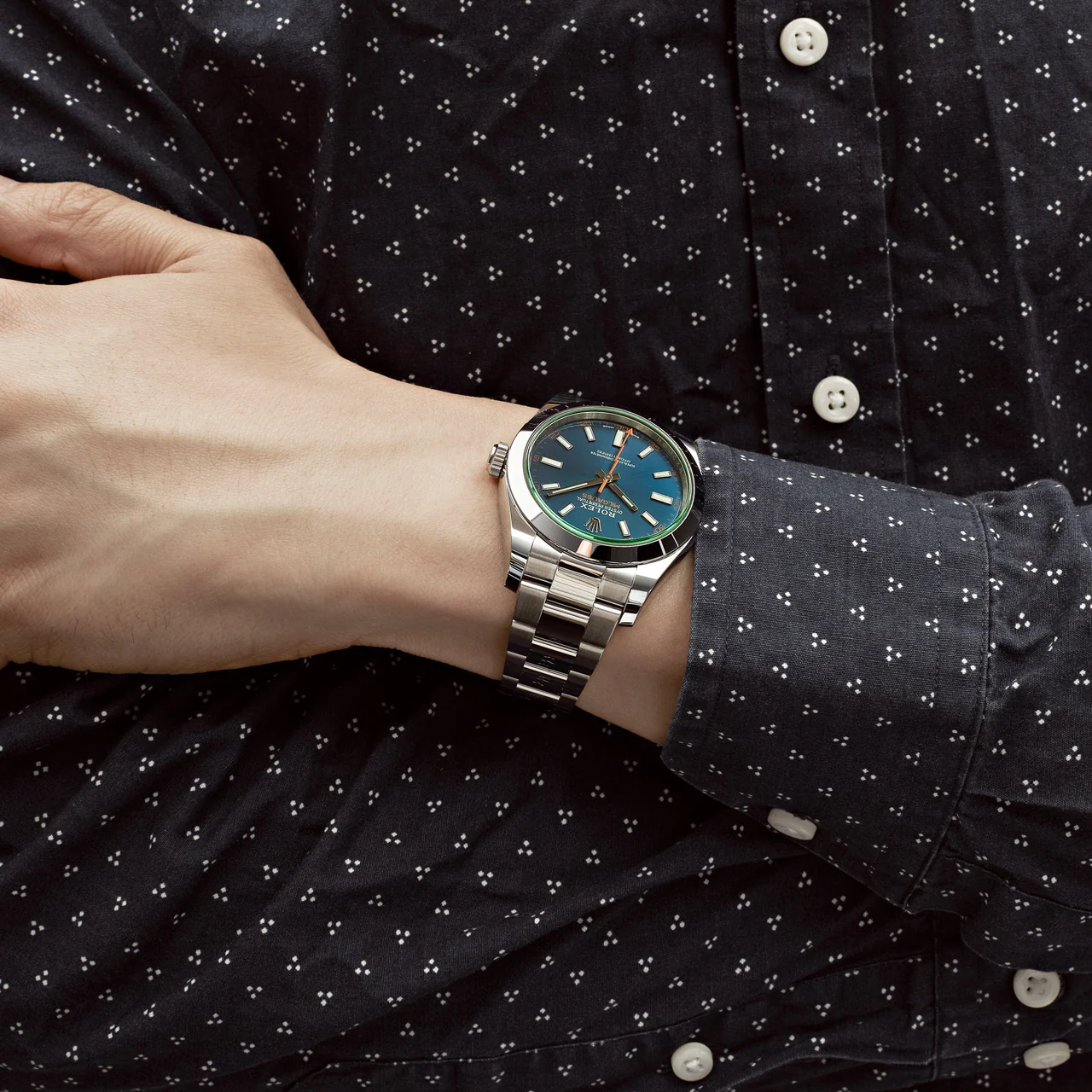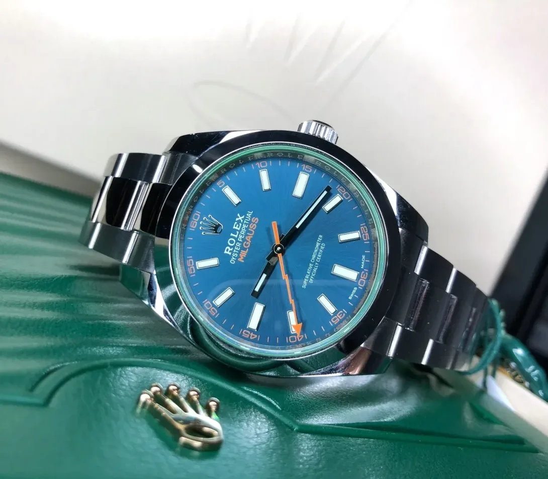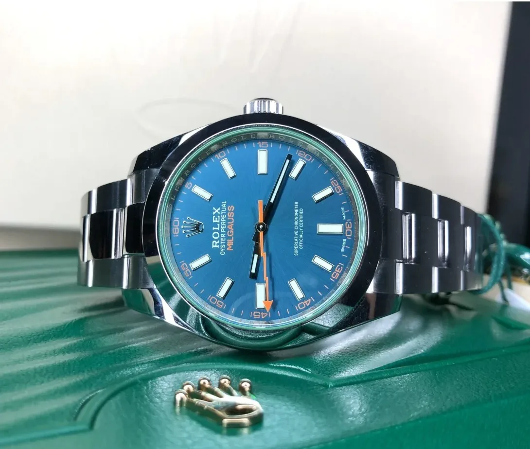من أبرز ملامح الجمال في رولكس ميلغوس عقرب الثواني البرتقالي على شكل صاعقة برق، إلى جانب الحروف البرتقالية لكلمة “MILGAUSS” ومؤشرات الدقائق البرتقالية التي تبرز على الميناء، وتضفي لها لمسة جريئة تميزها عن أي ساعة أخرى. هذه التفاصيل تبرز الروح العلمية والتقنية للساعة، حيث صممت في الأصل لتحمل البيئات ذات المجالات المغناطيسية القوية، ما يجعلها الخيار الأول للعلماء والمهندسين وأصحاب الذوق الرفيع.