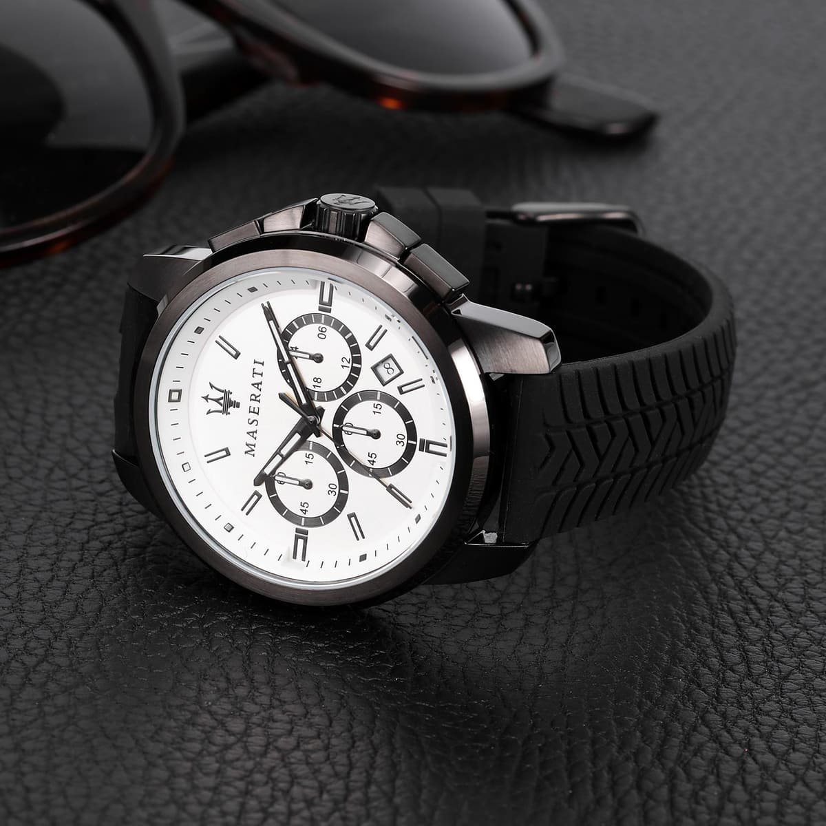 ساعة مازيراتي رجالي أصلية موديل (تراديسيون) R8823125001 Tradizione  بلون ابيض و استيك معدن ستانلس ستيل بلون فضي     تعرف على المواصفات كاملة في الاسفل