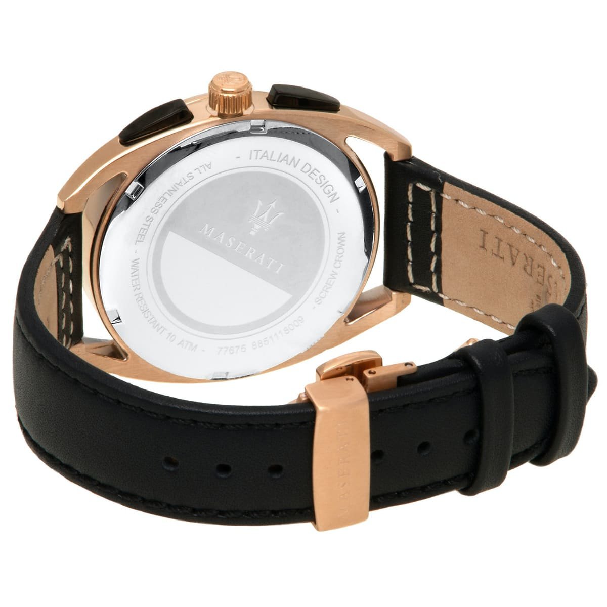 ساعة مازيراتي رجالي أصلية موديل (تريمارانو) R8871632002 Trimarano بلون اسود و استيك جلد طبيعي بلون اسود