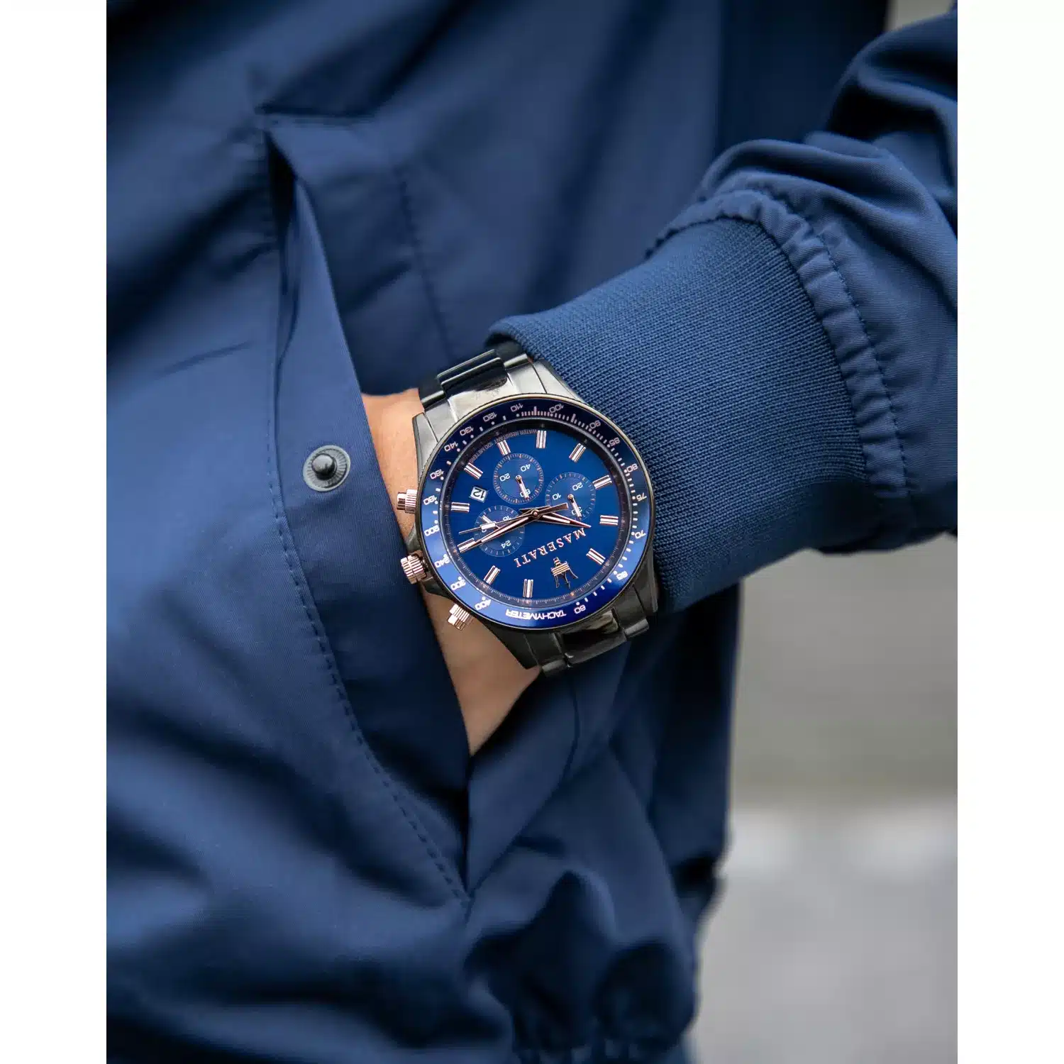 ساعة مازيراتي رجالي أصلية موديل (سفيدا) R8873640001 Sfida بلون ازرق و استيك معدن ستانلس ستيل بلون رمادي