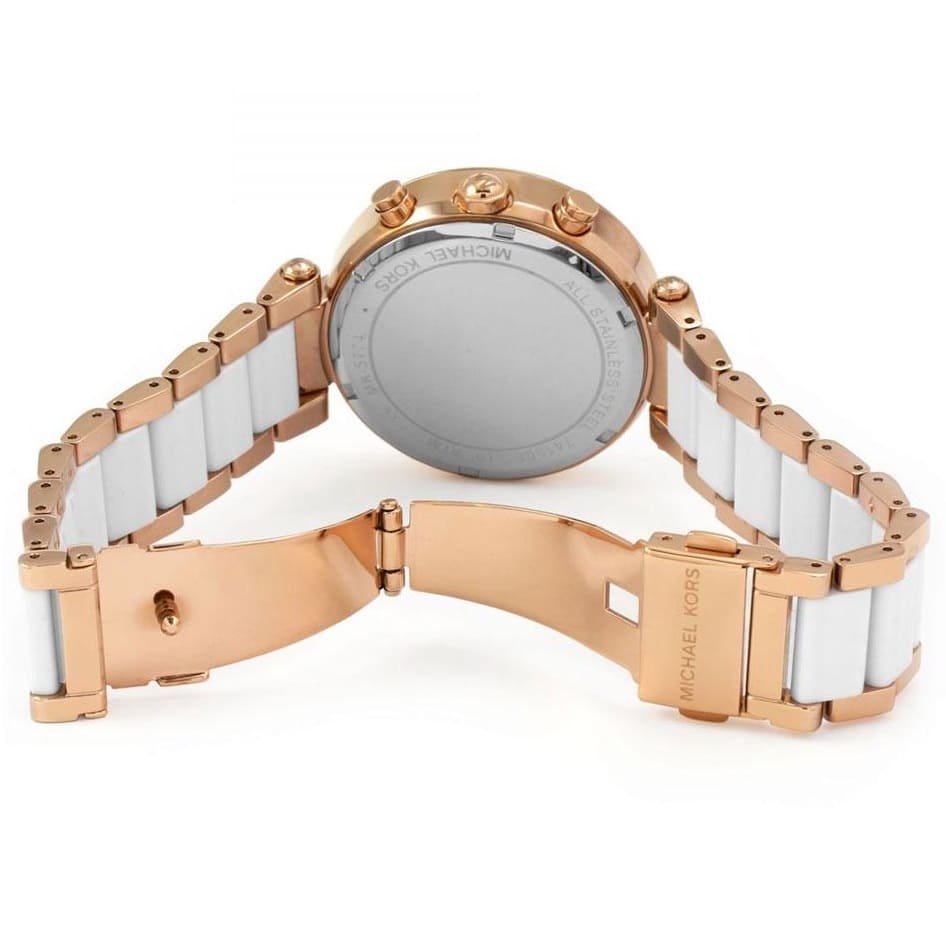ساعة مايكل كورس للنساء اصلية موديل (باركر) Parker MK5774 بلون ابيض واستيك معدن بلون نحاسي وابيض