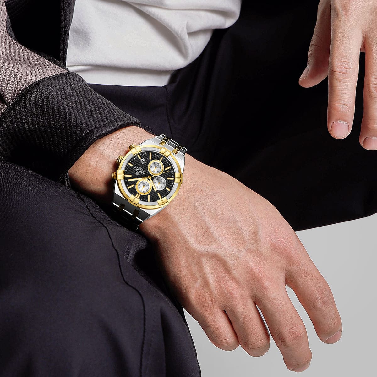 بلون اسود و استيك ستانلس ستيل بلون فضي و ذهبي