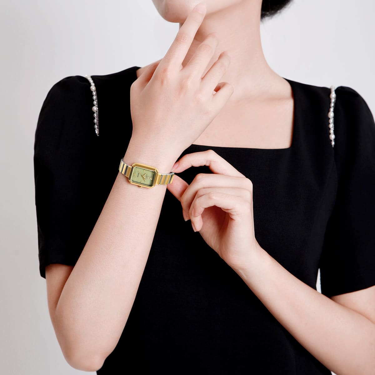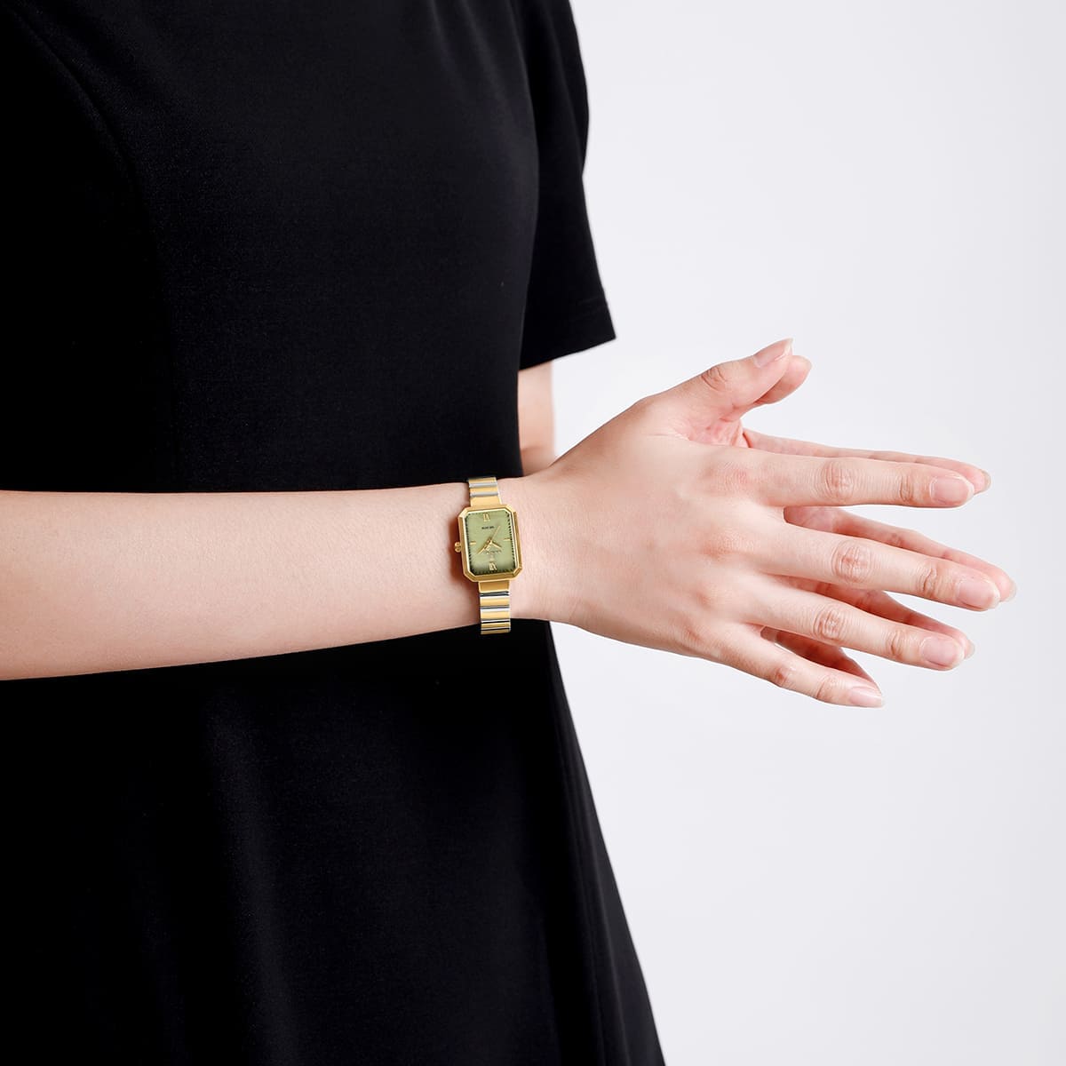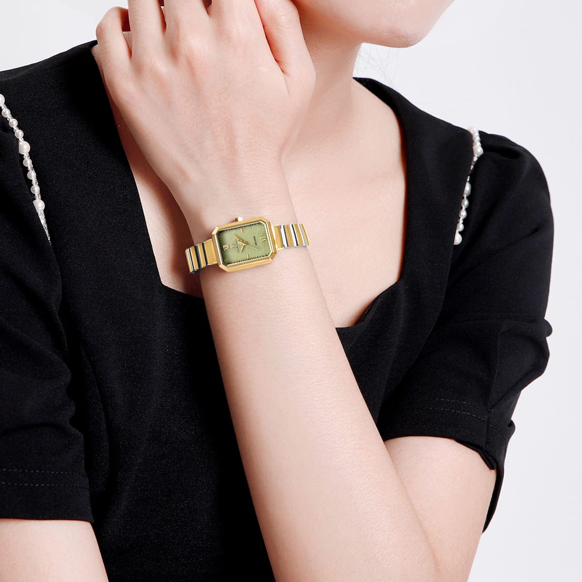 بلون اخضر و استيك ستانلس ستيل بلون فضي و ذهبي