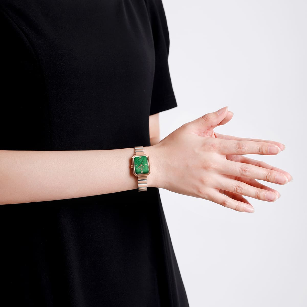 بلون اخضر و استيك ستانلس ستيل بلون فضي و نحاسي