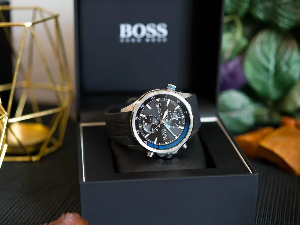 ساعة هوجو بوص اصليه للرجال موديل 1513820 بلون اسود واوستيك رابر مطاط بلون اسود