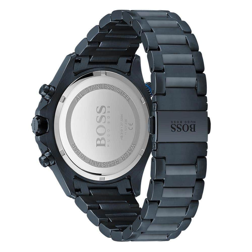 ساعة هوجو بوس للرجال أصلية موديل (جلوبتروتر) Globetrotter 1513824 بلون ازرق و استيك معدن بلون فضي