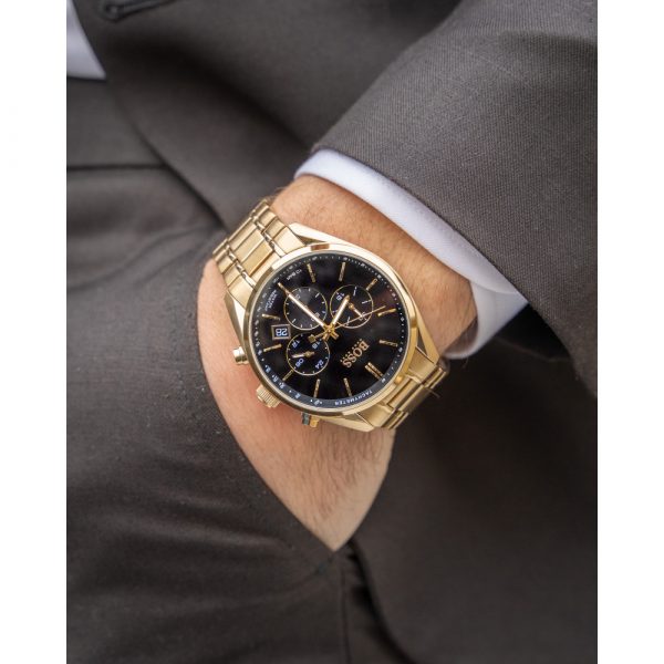 ساعة هوجو بوس للرجال أصلية موديل (شامبيون) Champion 1513848 بلون اسود و استيك معدن بلون ذهبي