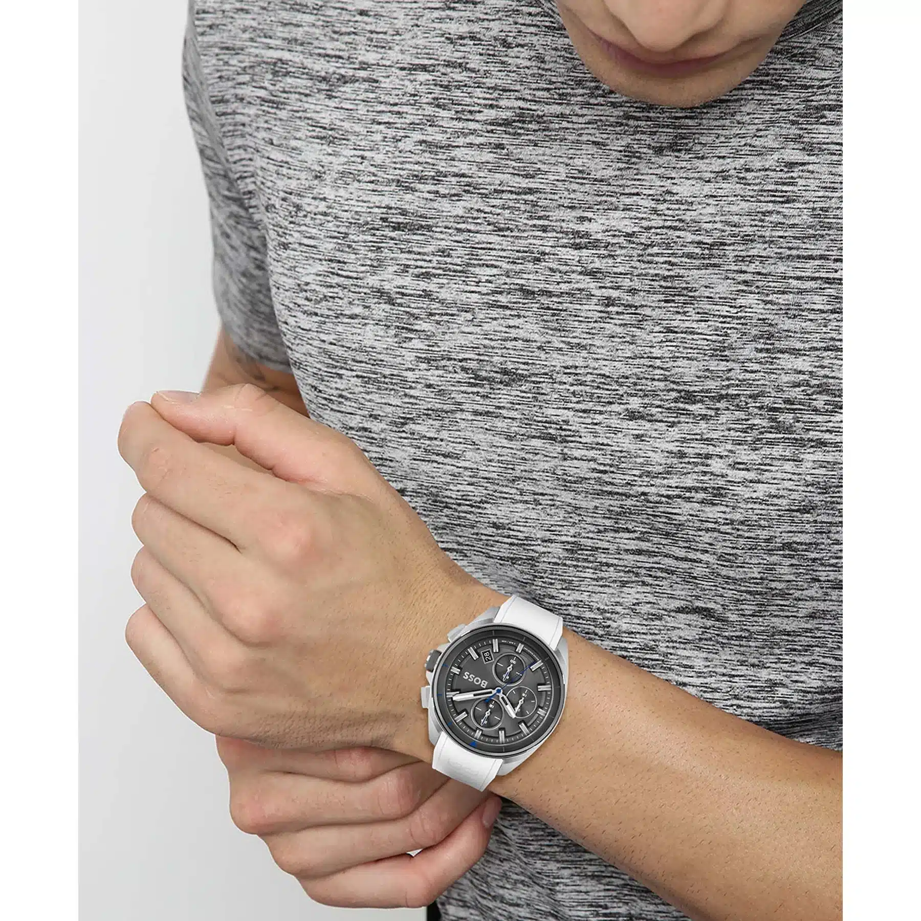 ساعة هوغو بوس للرجال اصلية موديل (فولان) Volane  1513948 بلون ابيض واستيك رابر لون ابيض