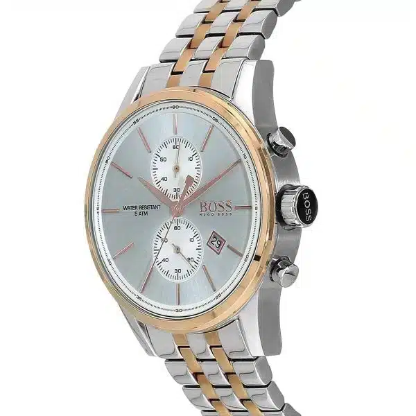 ساعة هوغو بوس للرجال اصلية موديل (جيت) Jet 1513385 بلون فضي واستيك معدن لون فضي و نحاسي