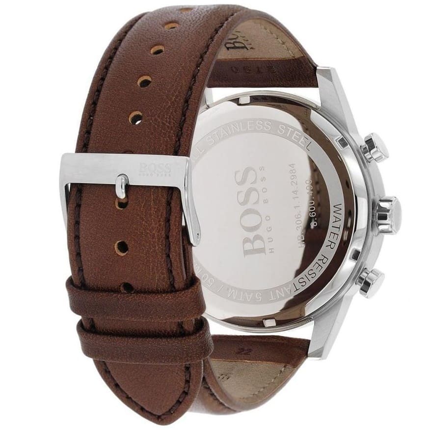ساعة هوغو بوس للرجال اصلية موديل (نافيجيتور) Navigator 1513495 بلون ابيض واستيك جلد لون بني