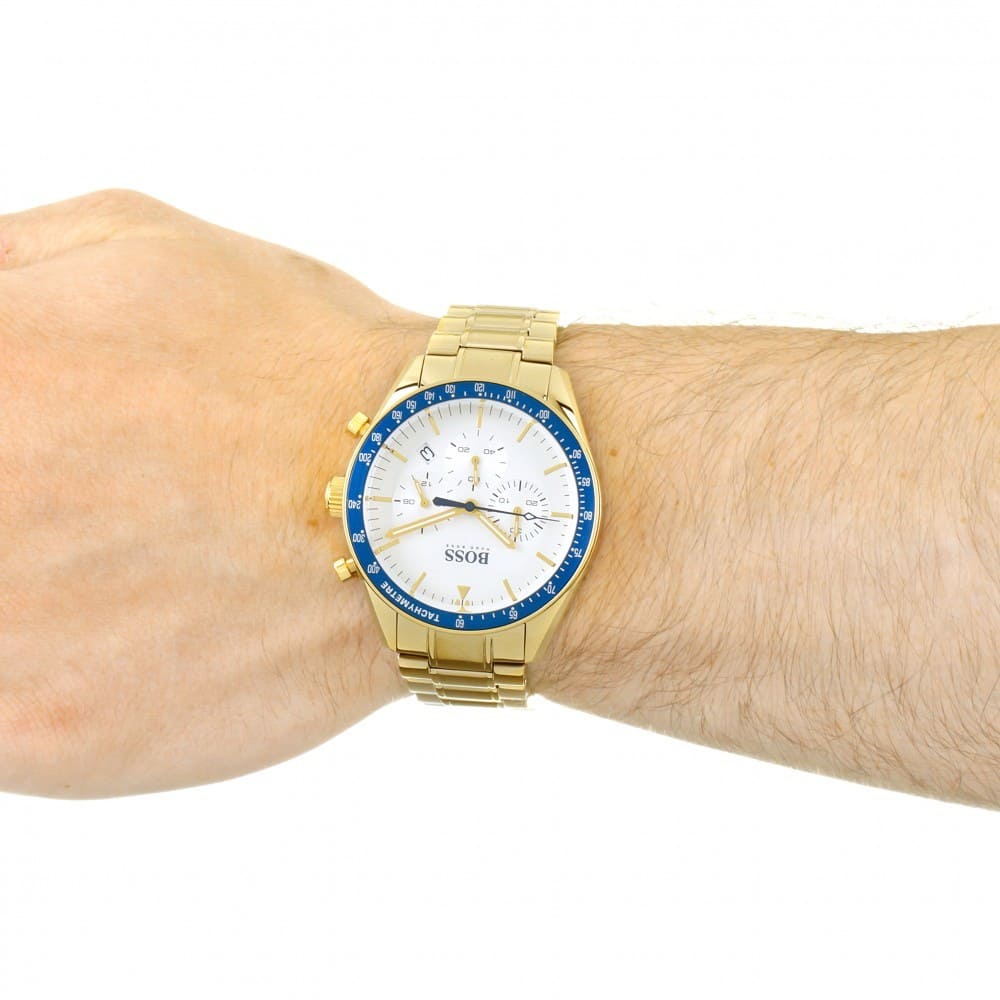 ساعة هوغو بوس للرجال اصلية موديل (تروفى) Trophy 1513631 بلون فضي واستيك معدن لون ذهبي