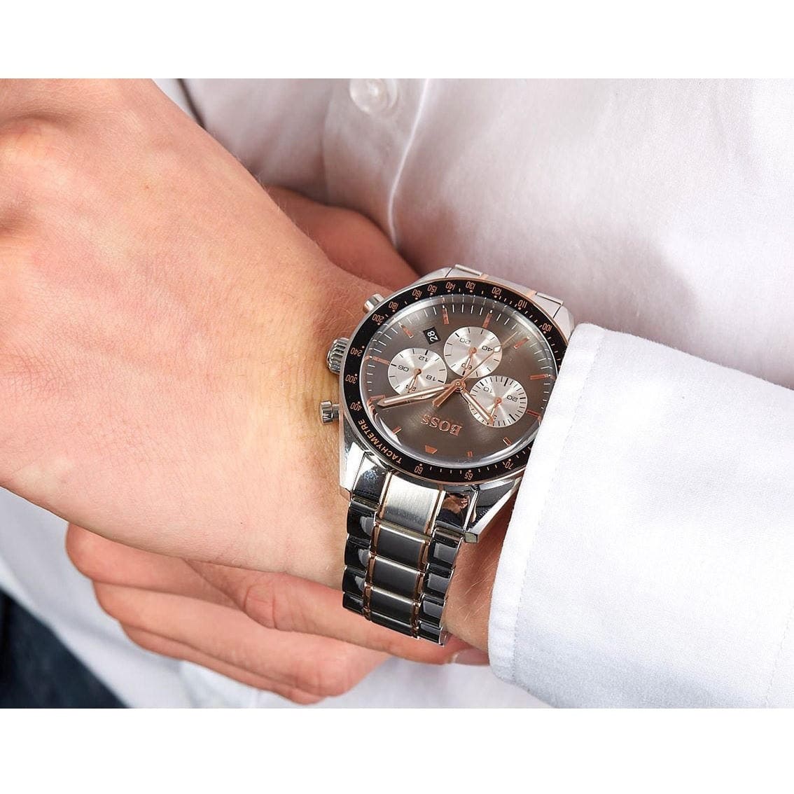 ساعة هوغو بوس للرجال اصلية موديل (تروفي) Trophy 1513634 بلون اسود واستيك معدن لون فضي و ونحاسي