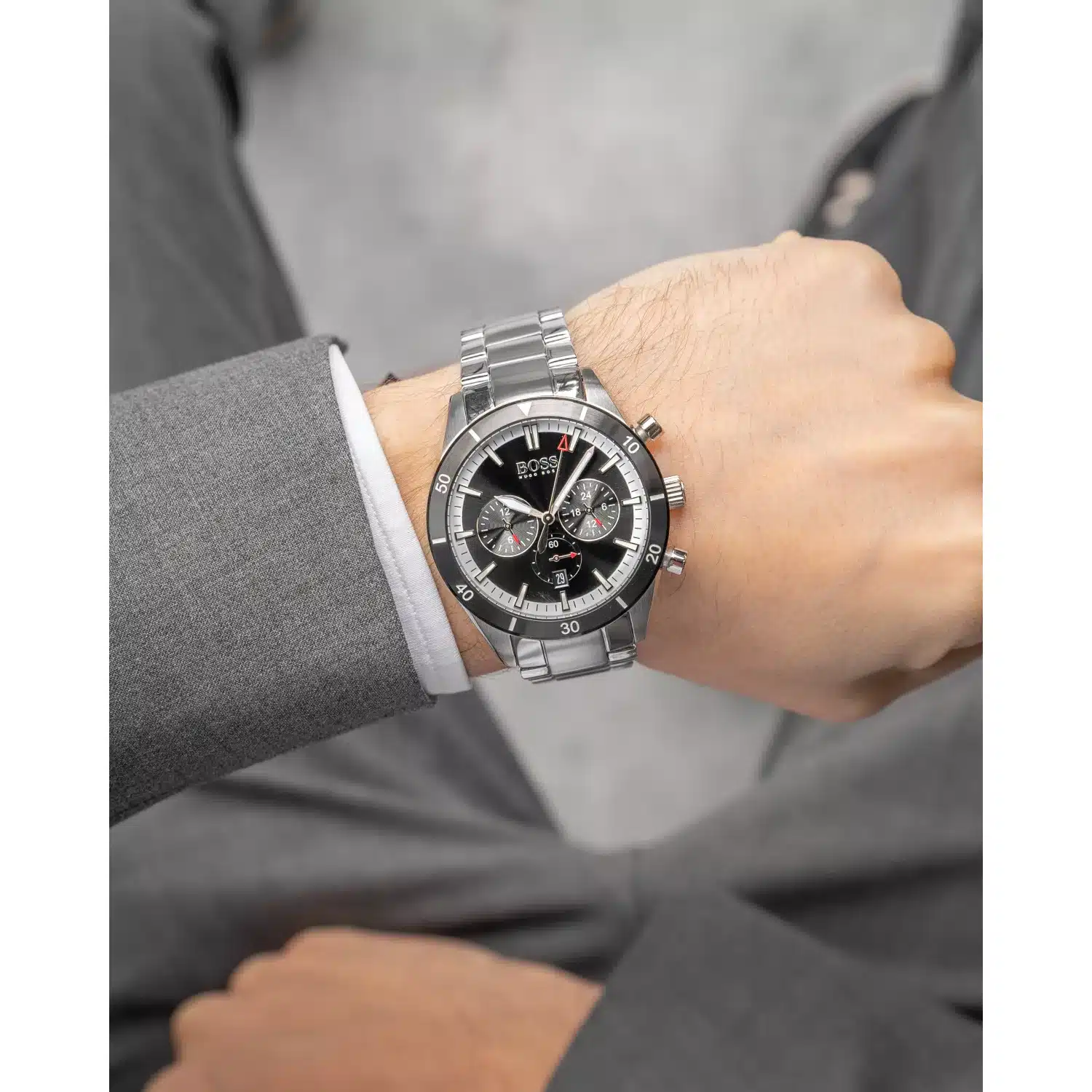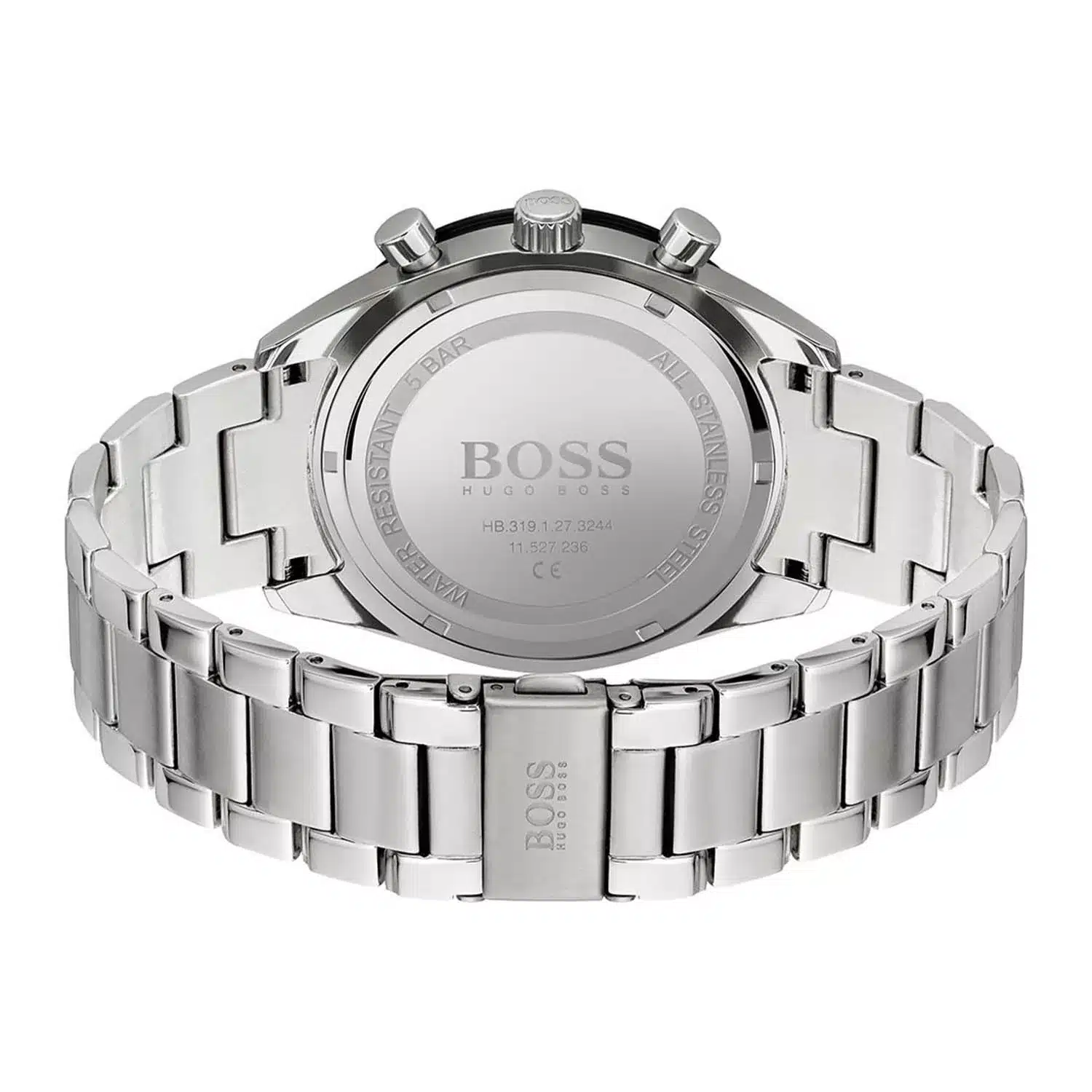 ساعة هوجو بوس للرجال أصلية موديل (سنتياجو ) Santiago 1513862 بلون اسود و استيك معدن بلون فضي