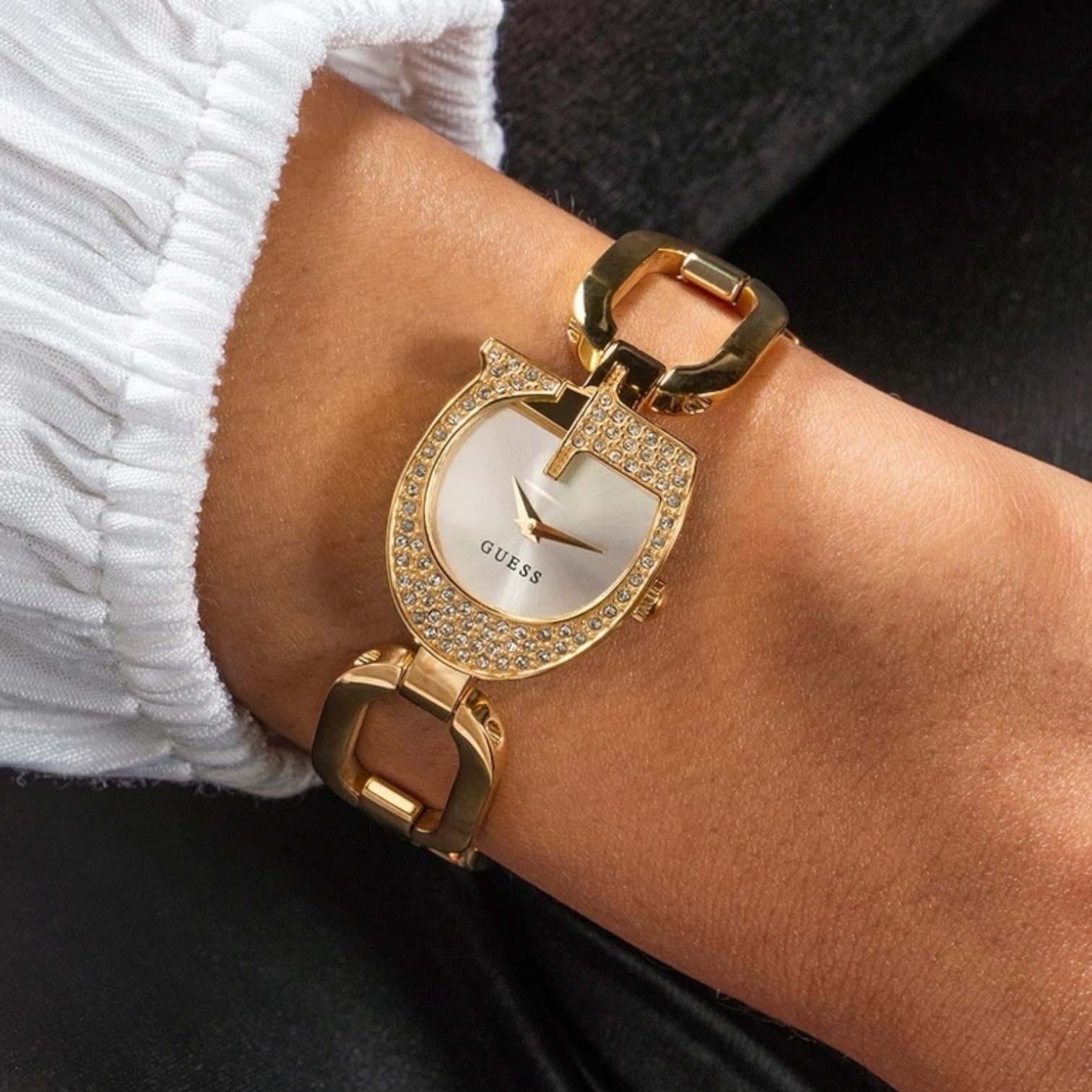 ساعة جيس للنساء أصلية موديل (مونتير) W1117L2 (Montre ) لون ابيض و استيك معدن ستانلس لون ذهبي.