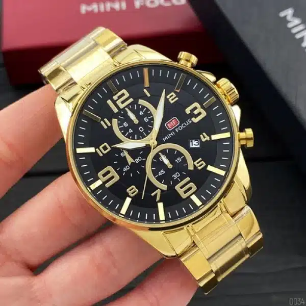 ساعة ميني فوكاس رجالي أصلية موديل MF0278G.01 بلون اسود و استيك معدن بلون ذهبي