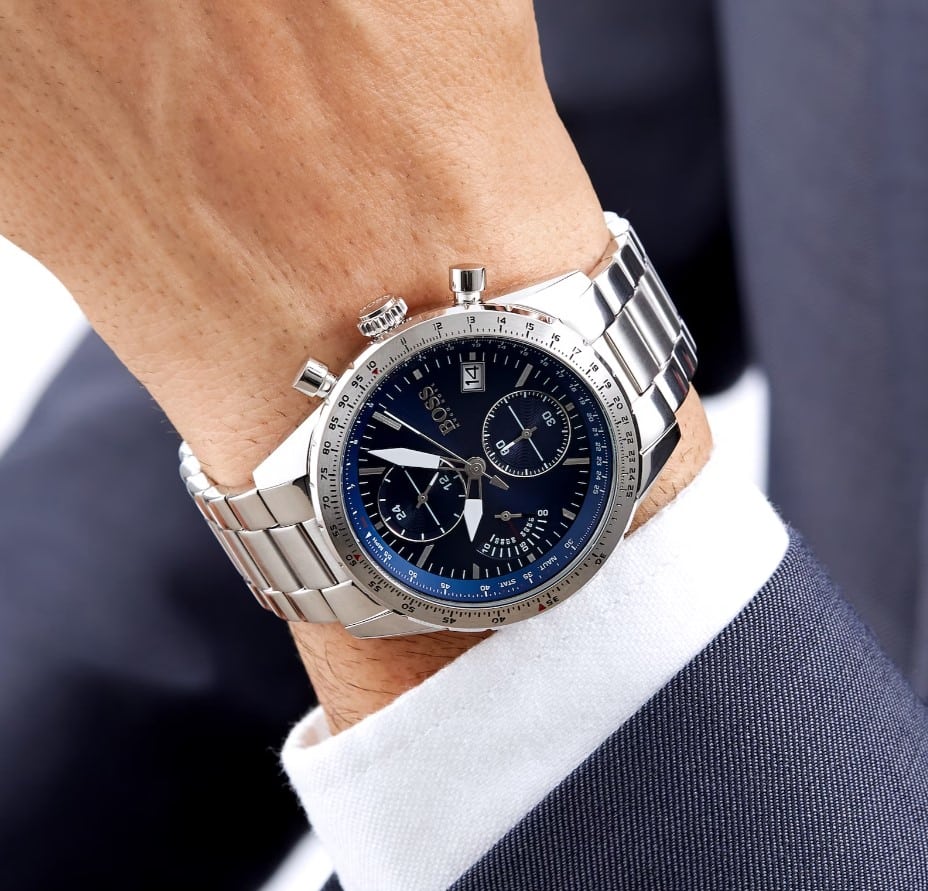 ساعة هوجو بوس للرجال أصلية موديل (بولت اديشن) Pilot Edition 1513850 بلون ازرق و استيك  معدن بلون فضي