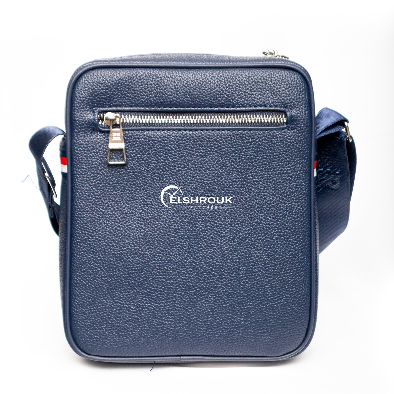 اللون الازرق العميق يمنح مرونة تنسيق عالية؛ يتماشى مع البدلة الداكنة، وقميص العمل الأبيض، وحتى الجينز والتيشيرت. النقش المتكرر يضيف شخصية للقطعة ويجعلها ملفتة من دون ضجيج، فيما اللمسات المعدنية الفضية تعطي تبايناً أنيقاً يزيدها لمعاناً في الإضاءة المختلفة. إنها اختيار مثالي للرجل الذي يقدّر التفاصيل الصغيرة: سحاب قوي، خامة متينة، ولمسة نهائية مصقولة.