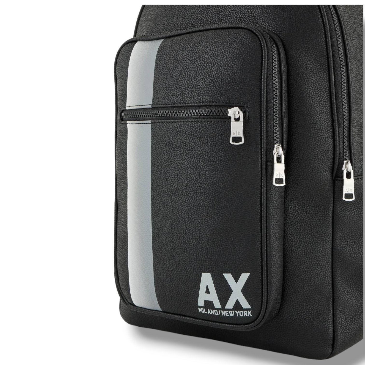 شنطة كروس A/X للرجال التي تجمع بين البساطة العصرية والجرأة الرياضية. تأتي بلون أسود أنيق يمنحها حضوراً قوياً وسهل التناسق مع الأزياء الكاجوال والرسمية الخفيفة. الواجهة الأمامية مزدانة بشريطين رأسيين بدرجات رمادي متدرّجة تضفي لمسة ديناميكية ذكية، إلى جانب شعار AX Milano/New York البارز الذي يوقّع التصميم بروح حضرية فاخرة. خامتها ذات ملمس حبيبي ناعم ومقاوم للاستخدام اليومي، فتبدو الشنطة متينة ومُصاغة بعناية، بينما تمنحك السحّابات المعدنية اللامعة إحساساً فوريّاً بالجودة وتضمن فتحاً وإغلاقاً سلساً.