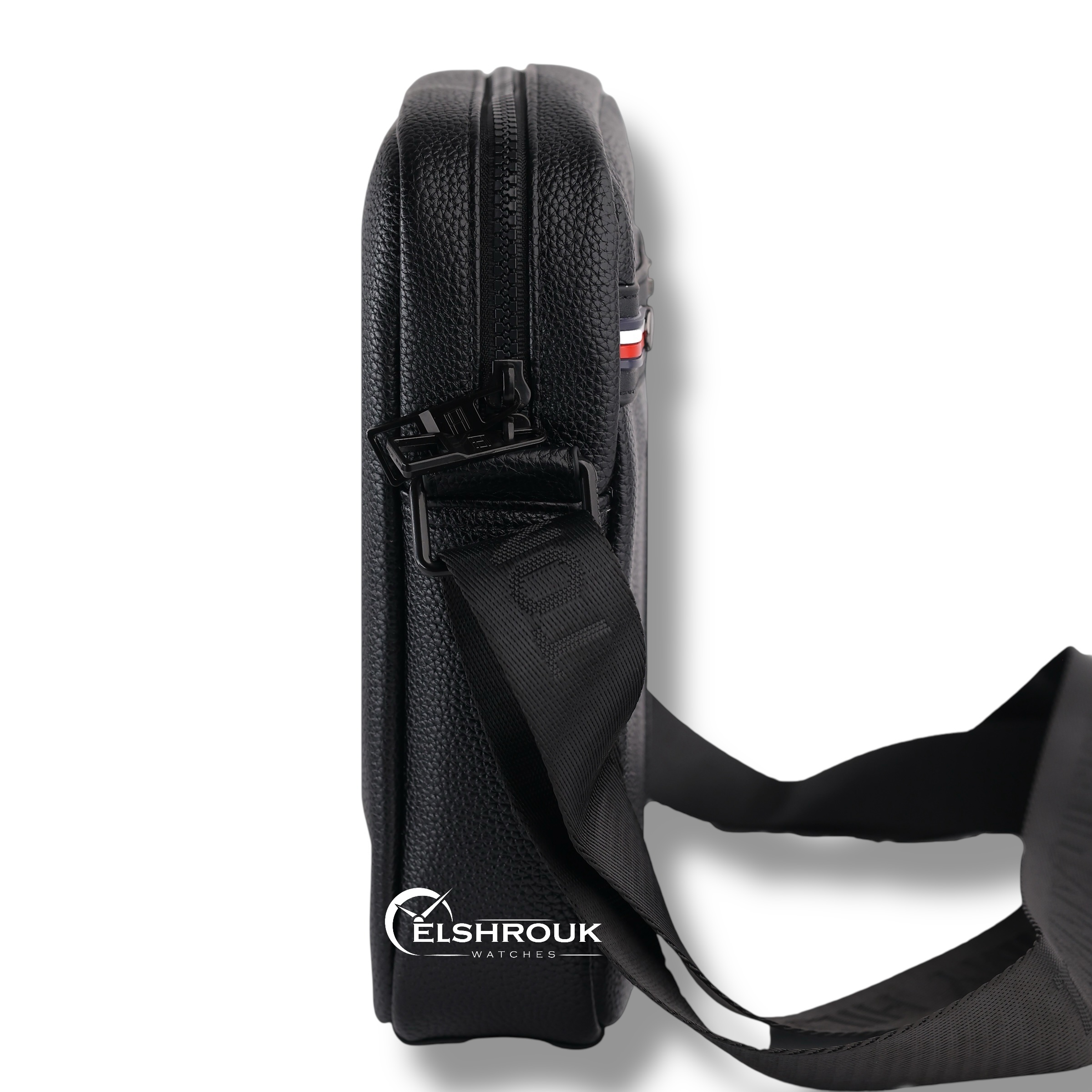 لوحة الألوان راقية بين الأزرق البحري العميق والأسود الكلاسيكي، مع لمسة العلم المصغّر على الجوانب التي تضيف توقيعاً بصرياً يعرفه عشّاق الموضة. سطح الجلد المقاوم للخدوش يسهّل العناية ويضمن بقاء اللمعان واضحاً لفترة طويلة، ما يجعلها استثماراً عملياً يدوم. خطوط التصميم المستقيمة تمنح حضوراً حديثاً يناسب القميص الرسمي والتيشيرت على حد سواء، فتبدو الشنطة قطعة ستايل أساسية تكمل أي إطلالة.