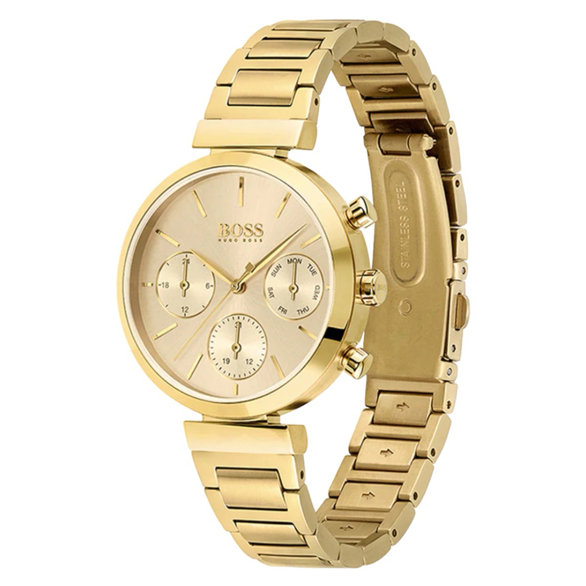ساعة هوجو بوس للنساء أصلية موديل (فلاويس) Flawless 1502532 بلون ذهبي و استيك معدن بلون ذهبي
