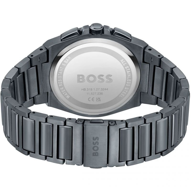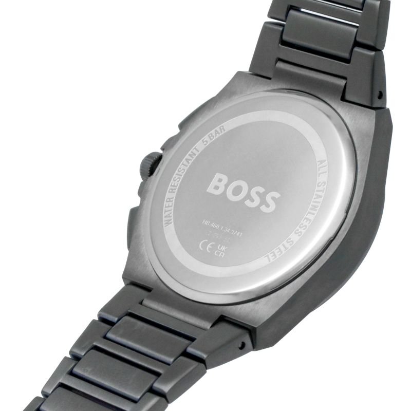 ساعة هوجو بوس للرجال أصلية موديل 1514068 (ستير) Steer بلون اسود و استيك ستنلس ستيل بلون رمادي