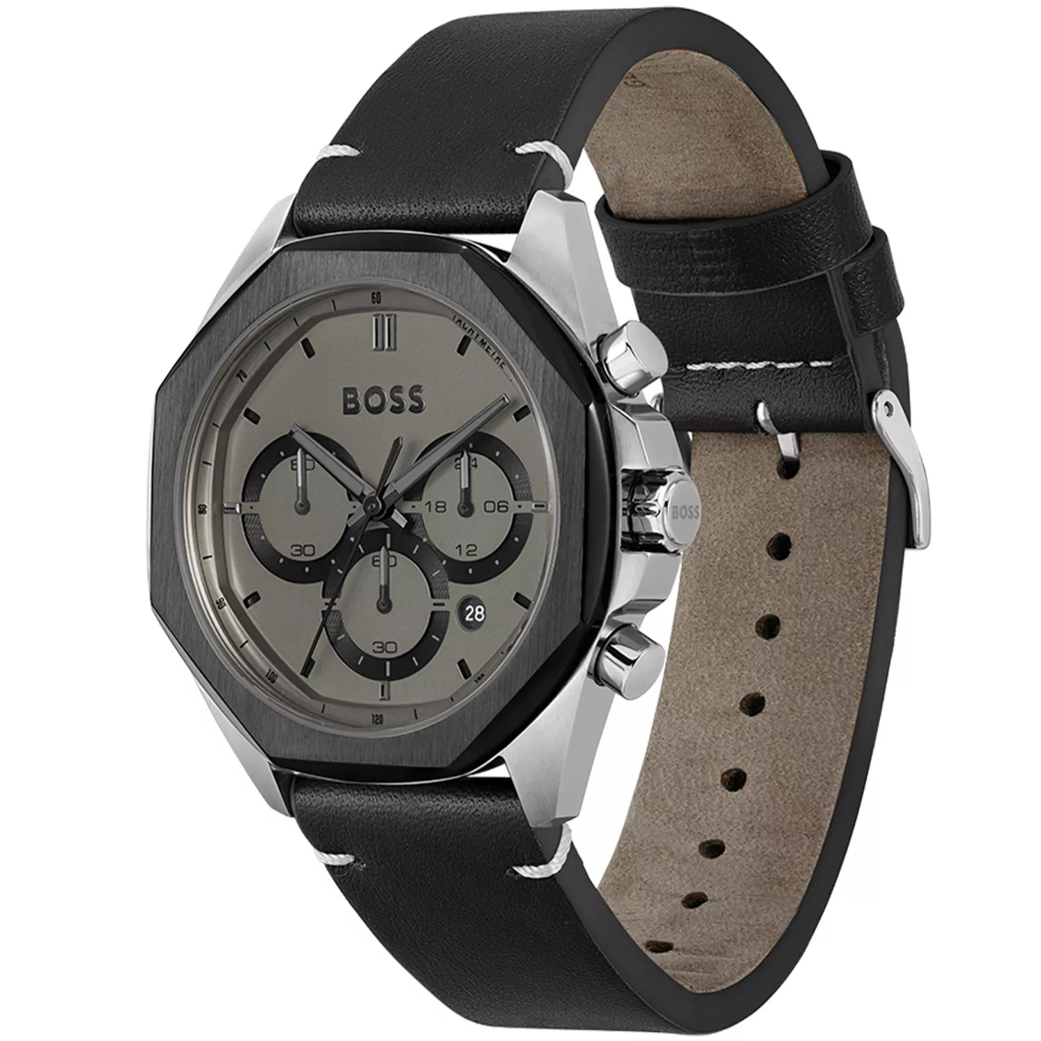 ساعة هوغو بوس للرجال اصلية موديل (كلاود) CLOUD 1514014 بلون اسود واستيك جلد طبيعي لون اسود