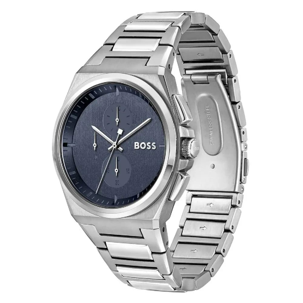 ساعة هوجو بوس للرجال أصلية موديل 1514048 (ستير) Steer بلون ازرق و استيك ستنلس ستيل بلون فضي