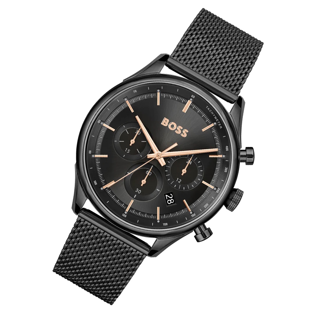 ساعة هوغو بوس للرجال اصلية موديل (جيرور) GREGOR 1514065 بلون اسود واستيك معدن لون اسود