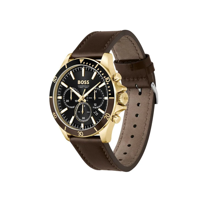 ساعة هوغو بوس للرجال اصلية موديل (توربير ) Troper 1514100 بلون اسود واستيك جلد طبيعي لون بني